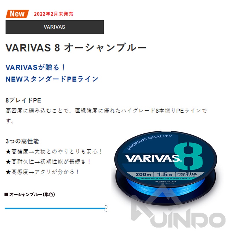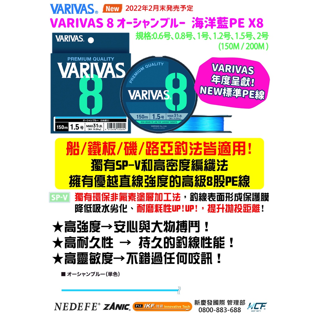 【敬多路亞】VARIVAS 海洋藍 X8 PE線 150M 200M 釣線 船釣 磯釣 鐵板 路亞 オーシャンブルー 8