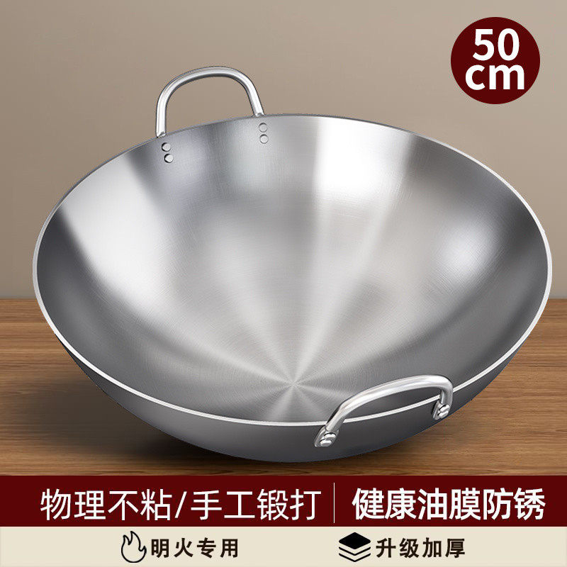 【新品】商用章丘精鐵炒鍋熟鐵鍋無塗層加厚老式廚師炒菜鍋雙耳熟鐵柴火竈 鍋子 燃氣竈適用 炒菜鍋 雙耳炒鍋 快速導熱不粘鍋