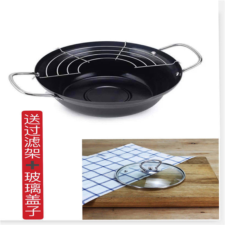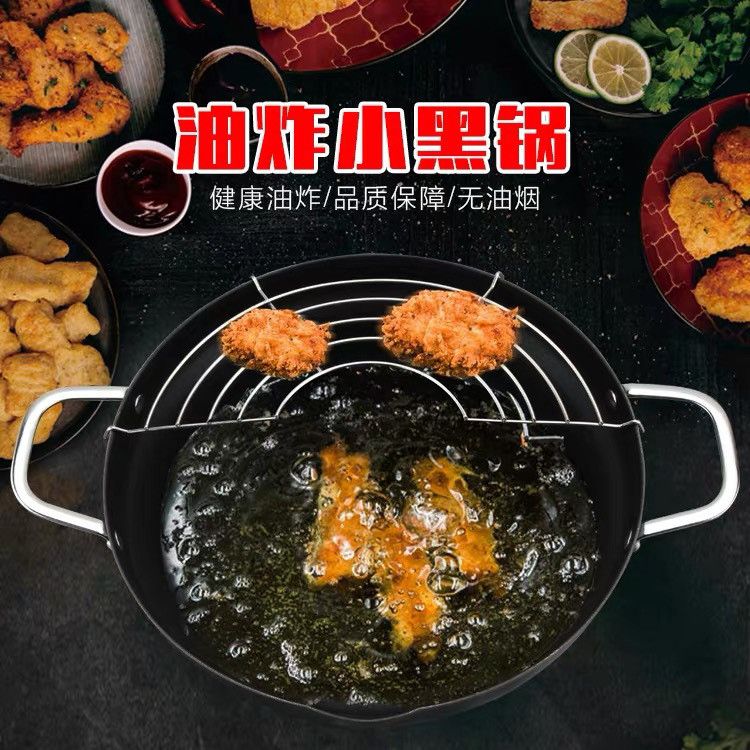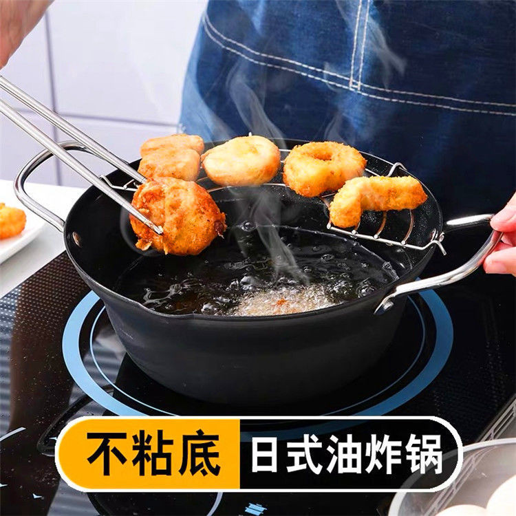 【新品】日式天㛿羅油炸鍋傢用迷你無油煙不粘深煎鍋日本小炸鍋電磁爐燃氣