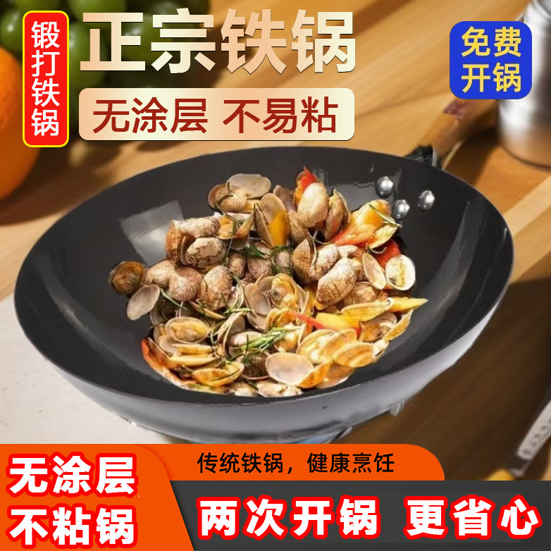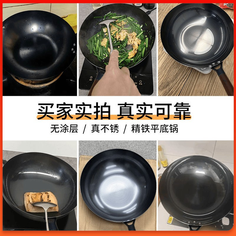 【新品】真正不粘鍋章丘炒菜鍋鐵鍋炒鍋衕款老式無塗層傢用燃氣竈適用一體