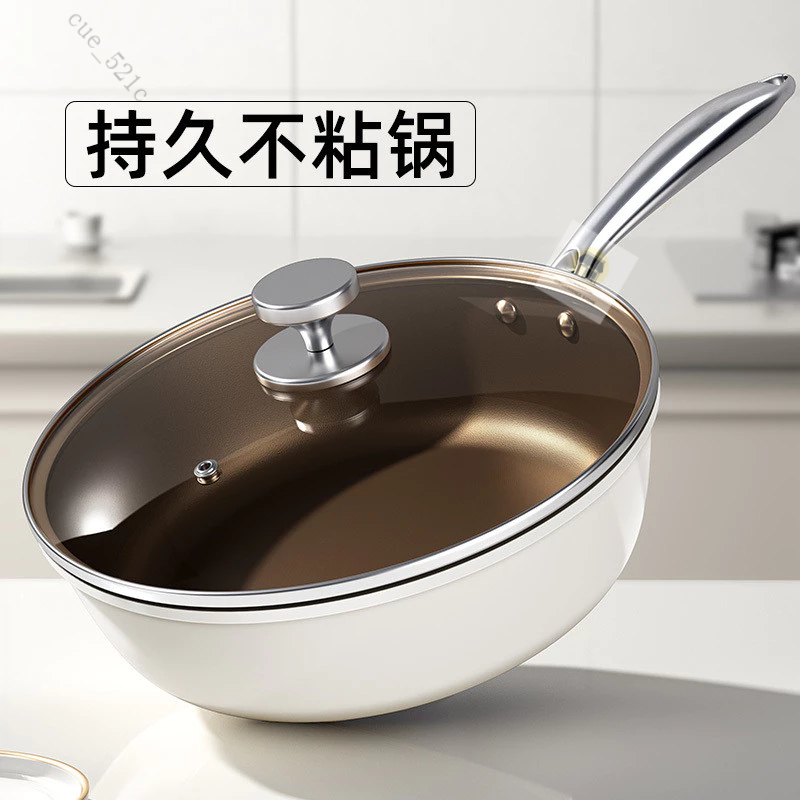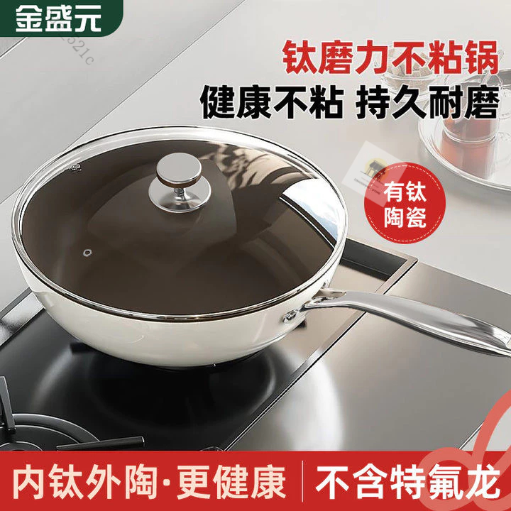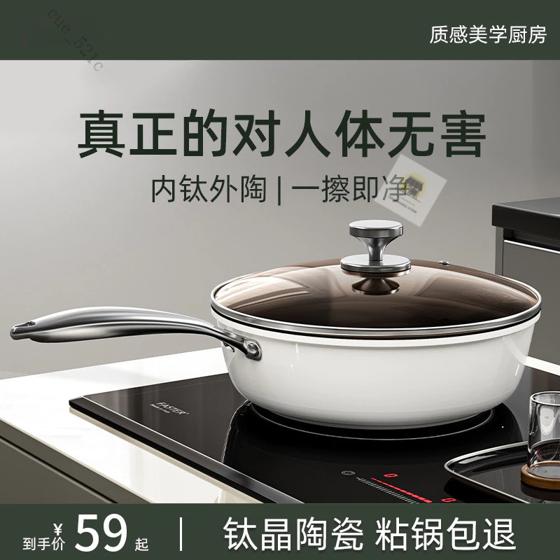【新品】陶瓷有鈦炒鍋不粘鍋傢用燃氣竈炒菜鍋電磁爐無油煙平底鍋經久耐磨 鈦匠鍋 鈦鍋 鈦炒鍋 不沾鍋 有鈦不沾鍋 鈦閤金炒