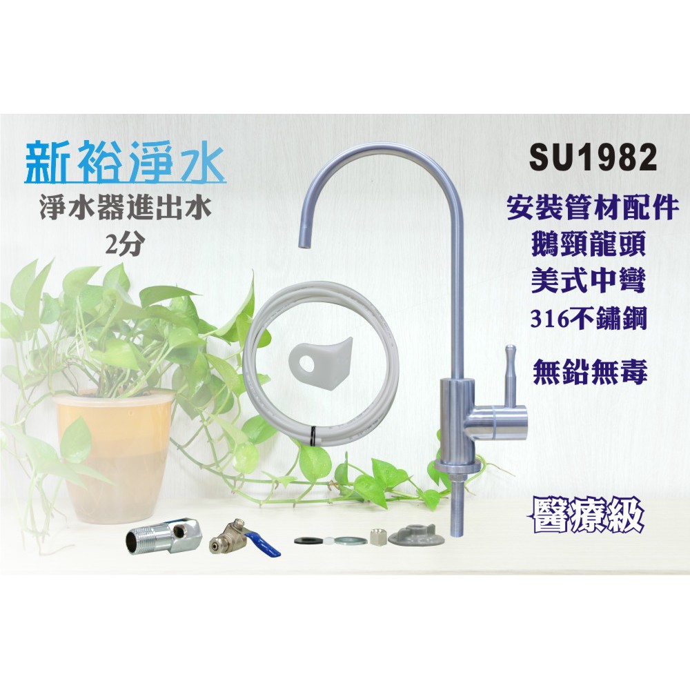 【新裕淨水】美式中彎316不鏽鋼鵝頸龍頭+管材配件 RO機 新淨安 過濾器進出水 超值組(SU1982)