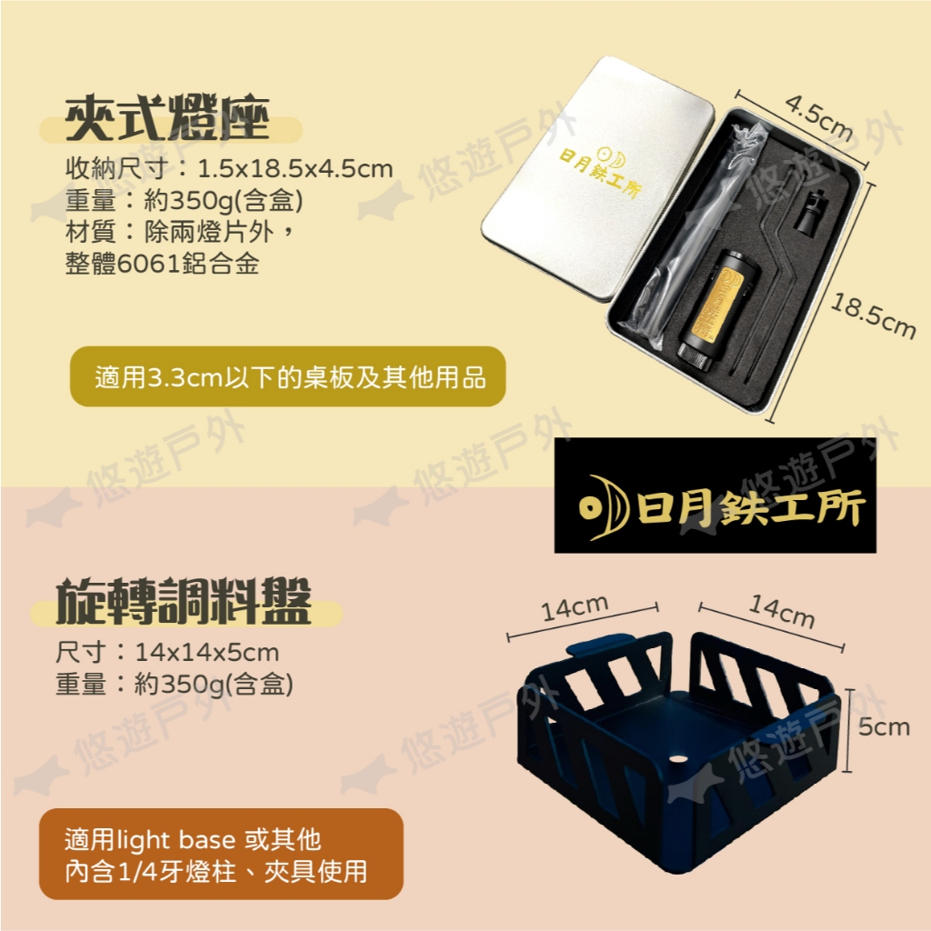 【日月鉄工所】Light base 夾式燈座/旋轉調料盤 燈桿 燈架 燈具 燈夾 調味料盤 野炊 露營 悠遊戶外
