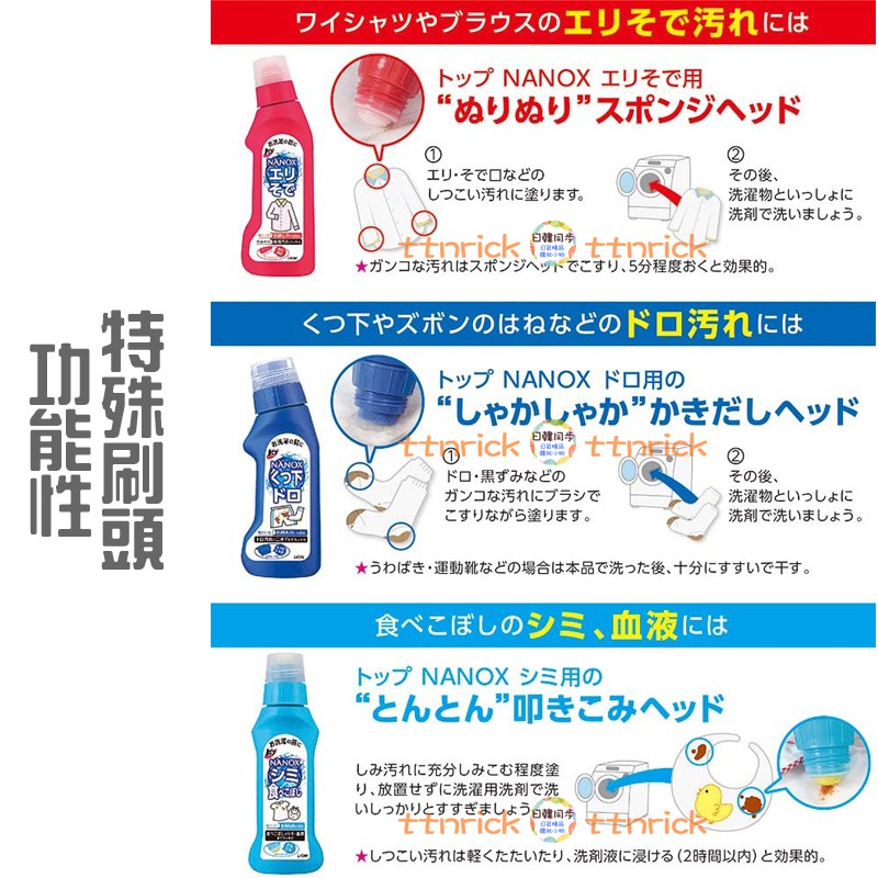 【日本同步】LION獅王 NANOX 塗抹式 衣物 局部去汙 去漬 特殊刷頭 清潔液 衣領 袖口 淨白 攜帶 急救 襪子