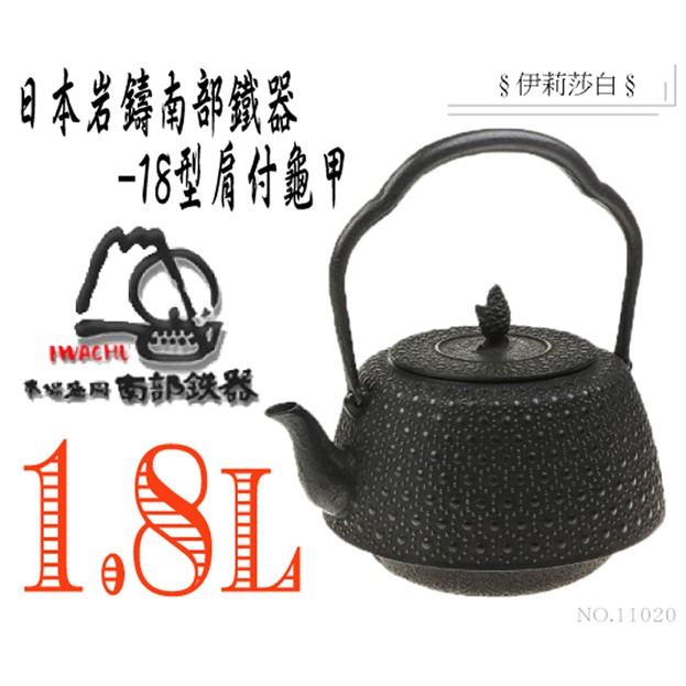 【日本岩鑄】【工藝師】1.8L 18型肩付龜甲/南部鐵器 /無塗層/煮水/鐵壺/鐵瓶/清末/普洱茶-11020