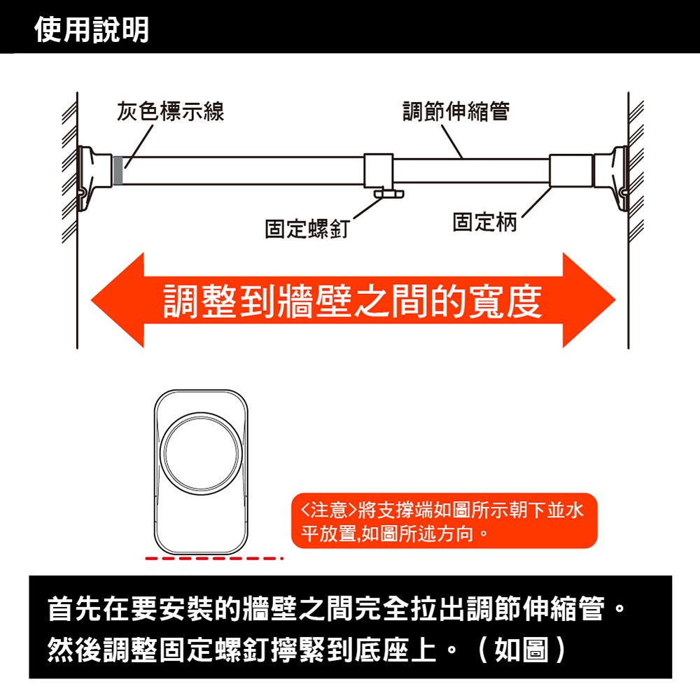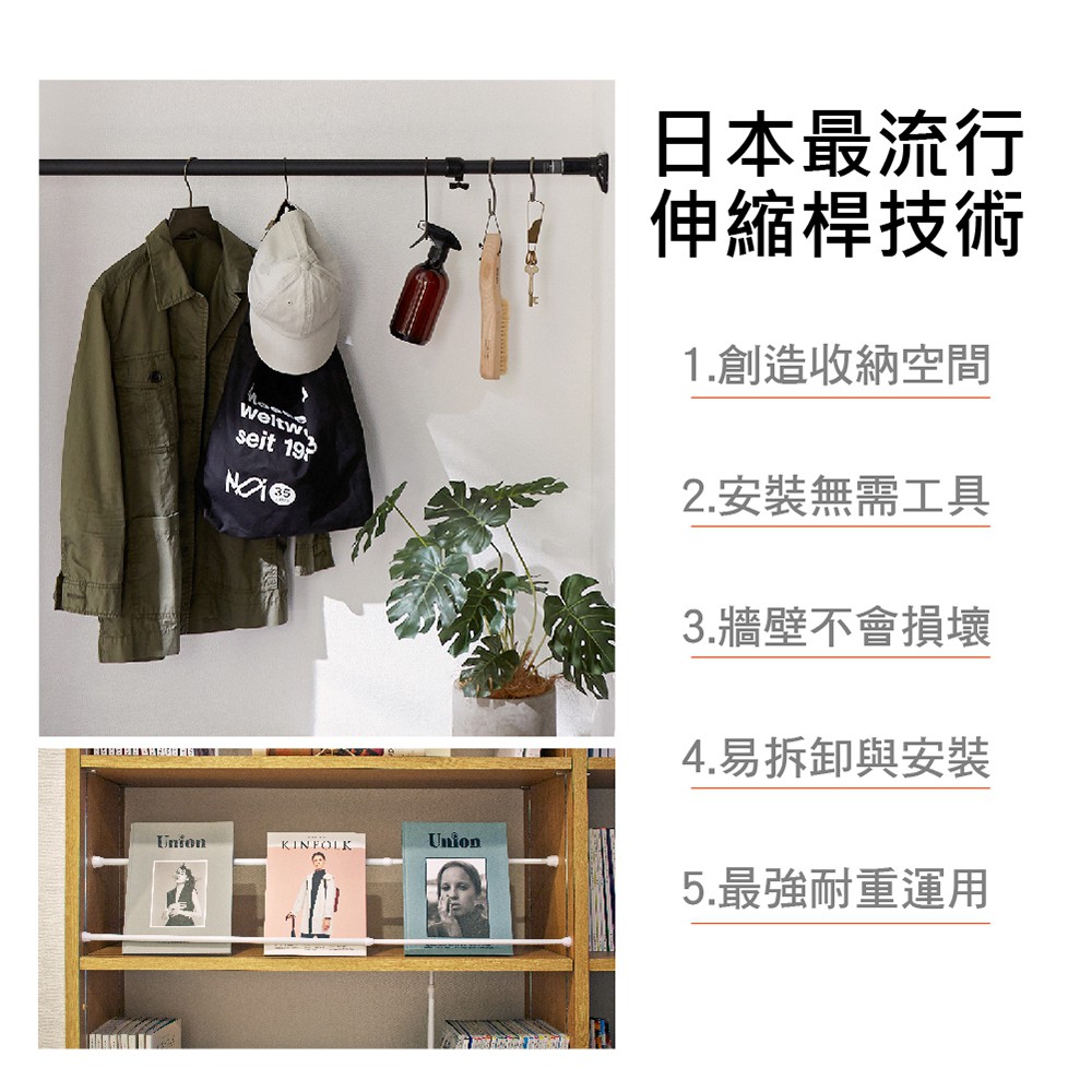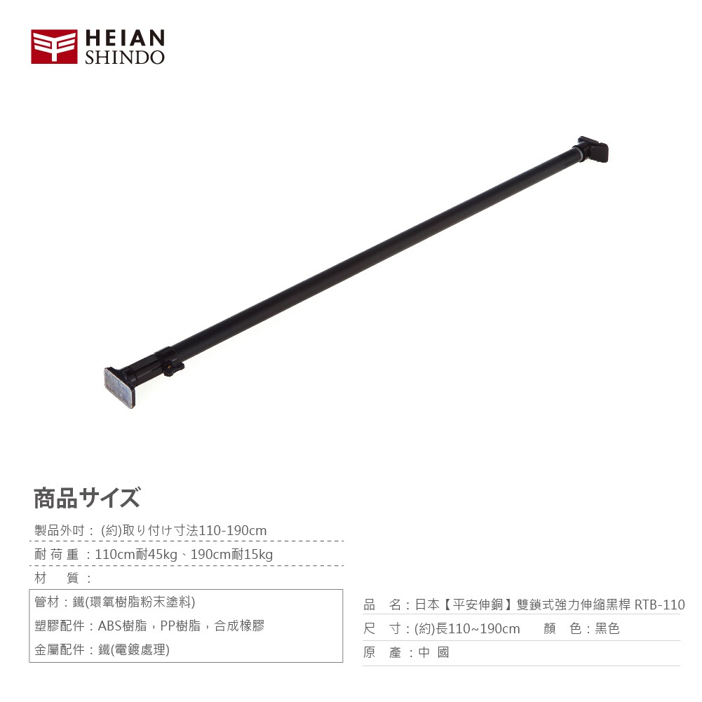 【日本平安伸銅】雙鎖式強力伸縮桿RTB-110(黑) 耐重45kg / 黑桿兩段式伸縮桿