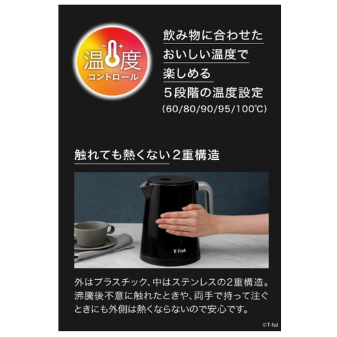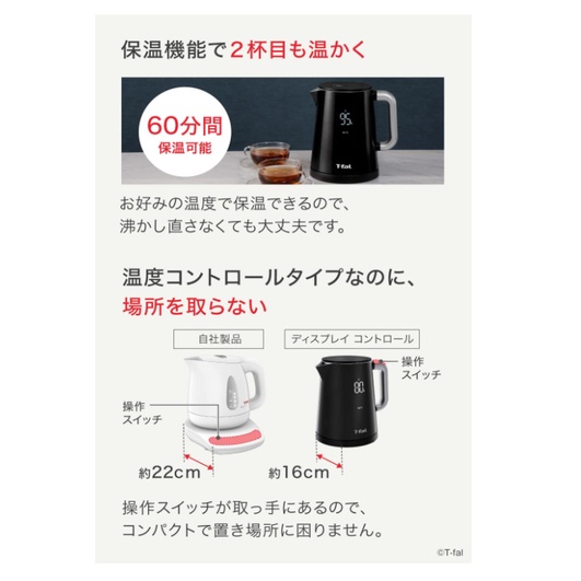 【日本直送!快速發貨!】T-FAL 電熱水壺 1.0L 數顯溫控 58秒沸騰 KO8548JP 5段溫度設定
