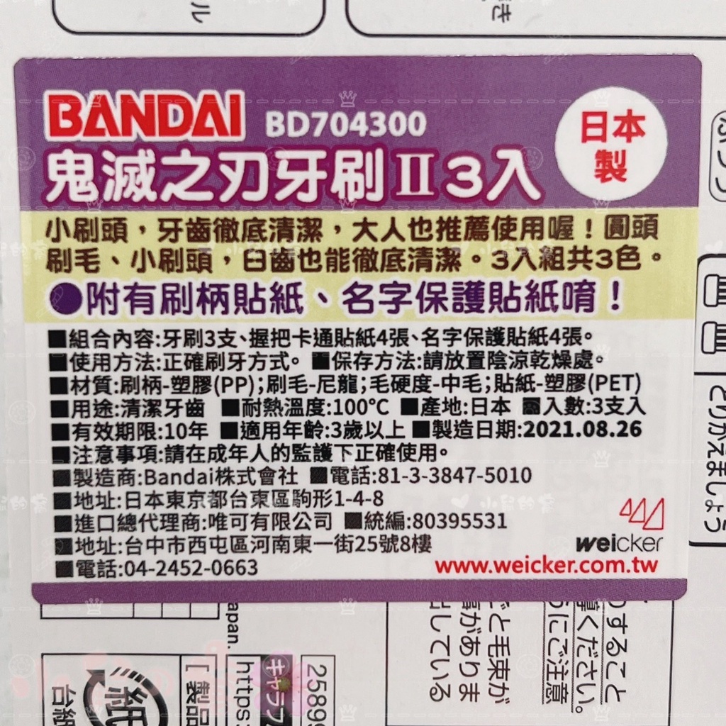【日本製】日本超人氣 Bandai 鬼滅之刃牙刷Ⅱ 3入 兒童牙刷 學習牙刷 幼稚園必需品【公司貨】小鼠的窩🌸