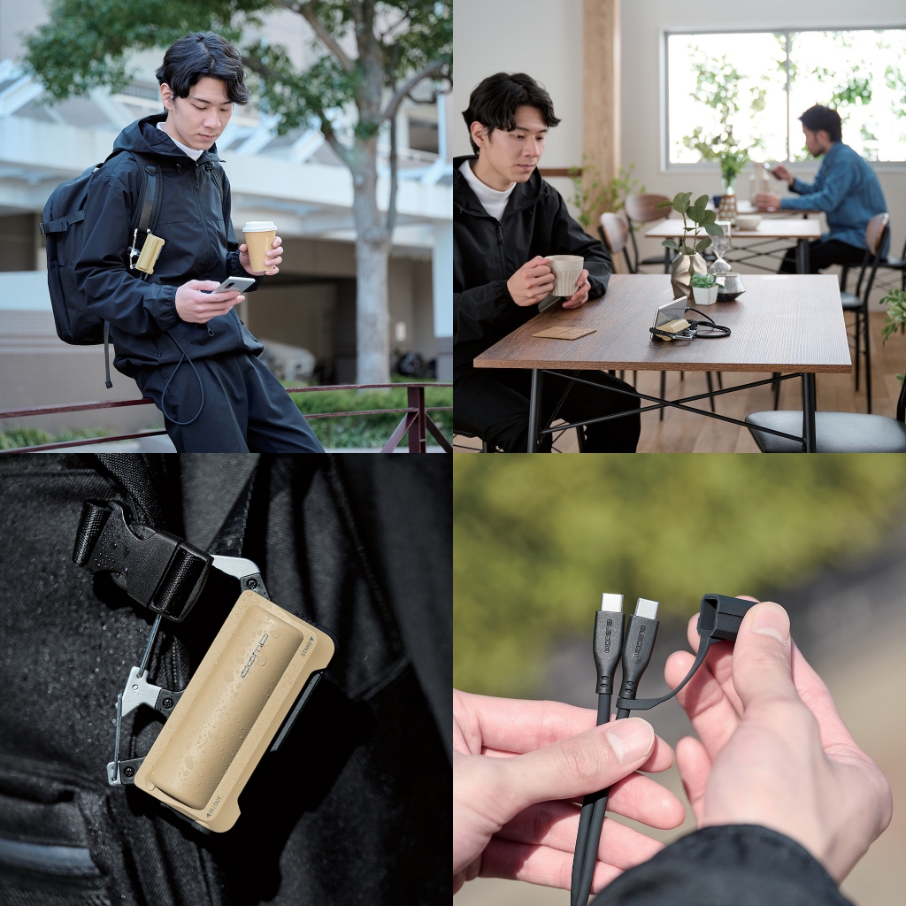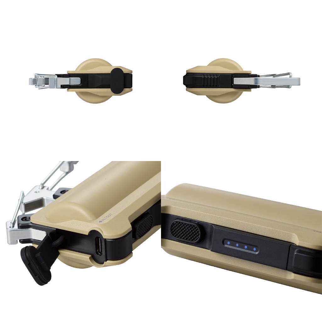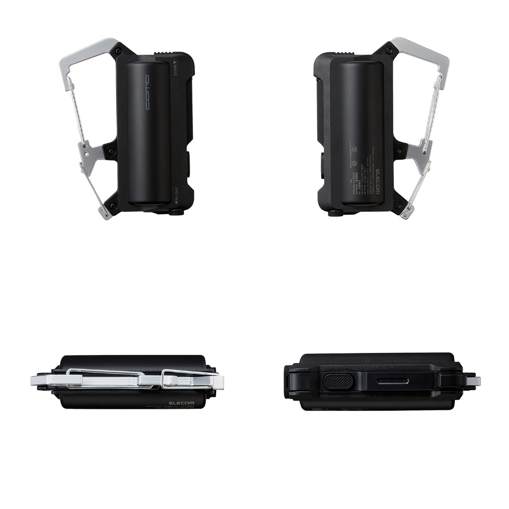 【日本ELECOM】NESTOUT 登山扣型行動電源5000mAh 沙色/黑色 IP44 隨身攜帶方便
