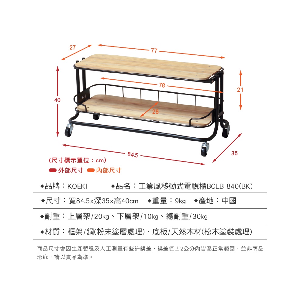 【日本KOEKI】工業風移動式電視櫃 BCLB-840(BK)/黑