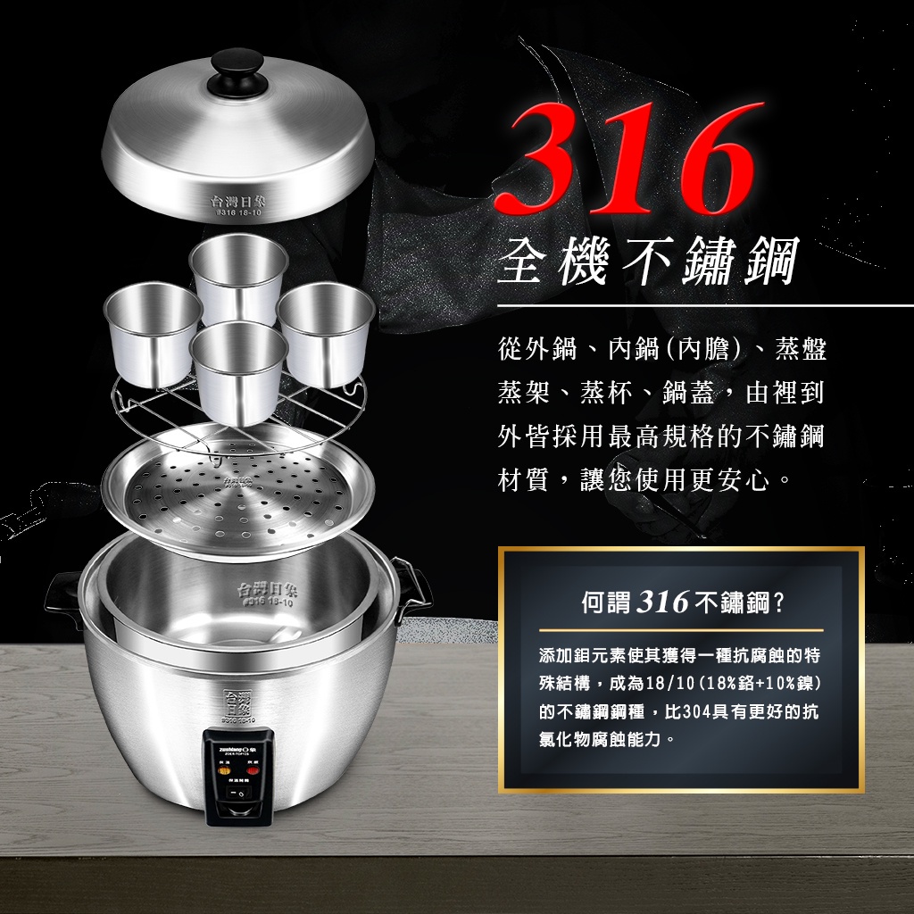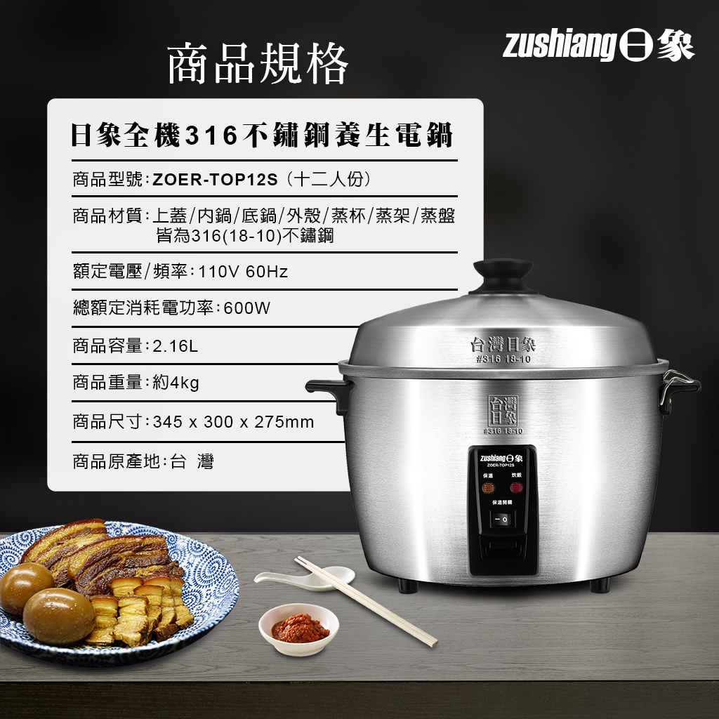 ⭐12月限定優惠⭐【日象】全機316不鏽鋼養生電鍋(12人份) ZOER-TOP12S 316不鏽鋼電鍋 台灣製MIT