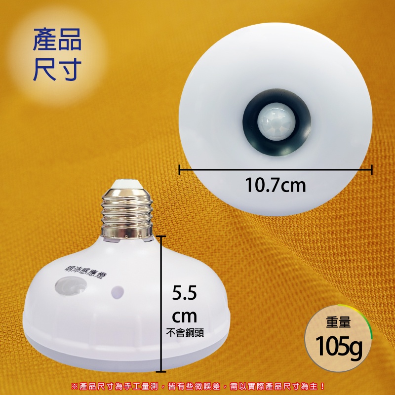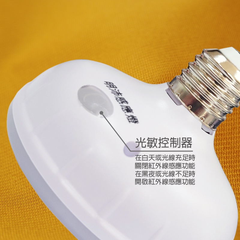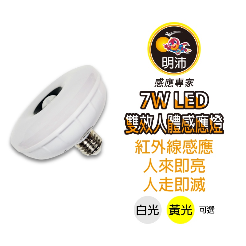 【明沛】7W LED雙效感應燈(夜燈+感應燈)(E27銅頭式)-人到大燈即亮人走大燈滅小燈亮-白光黃光可選-MP6774