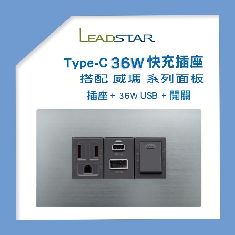 【易智磐石36W+威瑪】USB插座(1A1C) 快充模組 樹榮電工金屬拉絲面板 USB專用跳線插座 BSMI合格檢驗