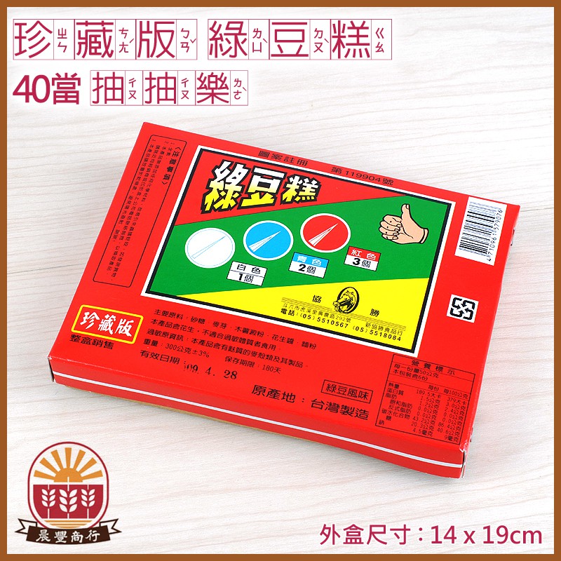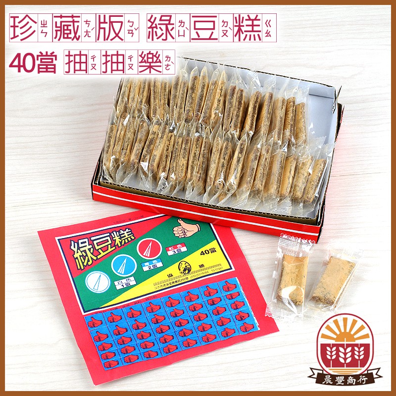 【晨豐商行】台灣綠豆糕 抽抽樂/ 台灣懷舊零食 /古早味零食 / 珍藏版綠豆糕(全素)40當抽樂/ 抽當 抽獎食品