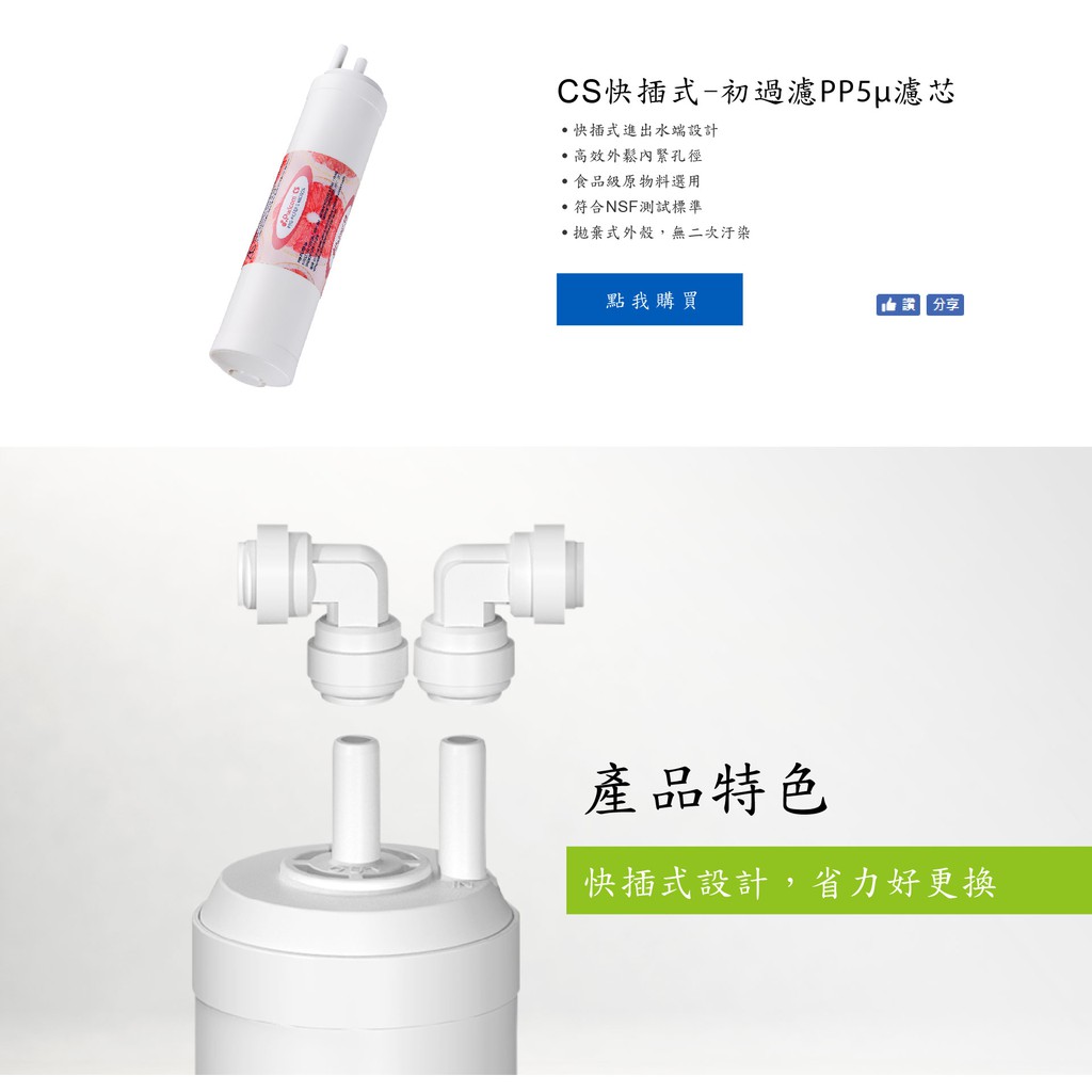 【普家康淨水官方直營】RO逆滲透淨水器-快拆式初過濾濾心-PP5µ濾芯-FKS-PP5µ