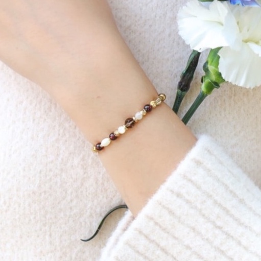 【月色真美】記憶守護者 | 擋煞除晦 x 健康紓壓 | 石榴石 茶晶 珍珠 水晶手鍊 S03
