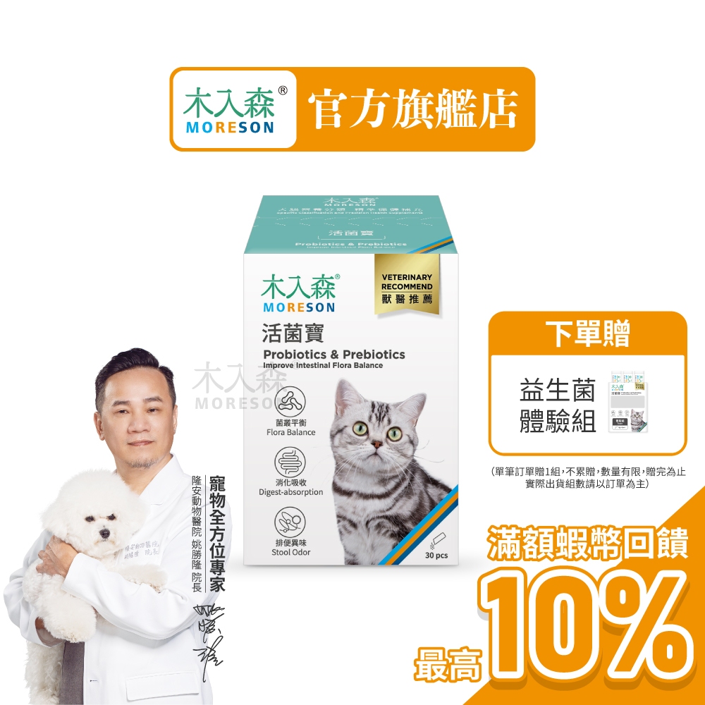 【木入森】貓咪活菌寶 (30包)|貓咪益生菌|黃金組合菌 綜合酵素|貓咪腸胃保健食品 寵物益生菌