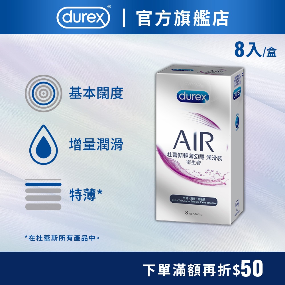 【杜蕾斯】AIR輕薄幻隱潤滑裝衛生套8入X1盒|保險套|Durex|官方旗艦店