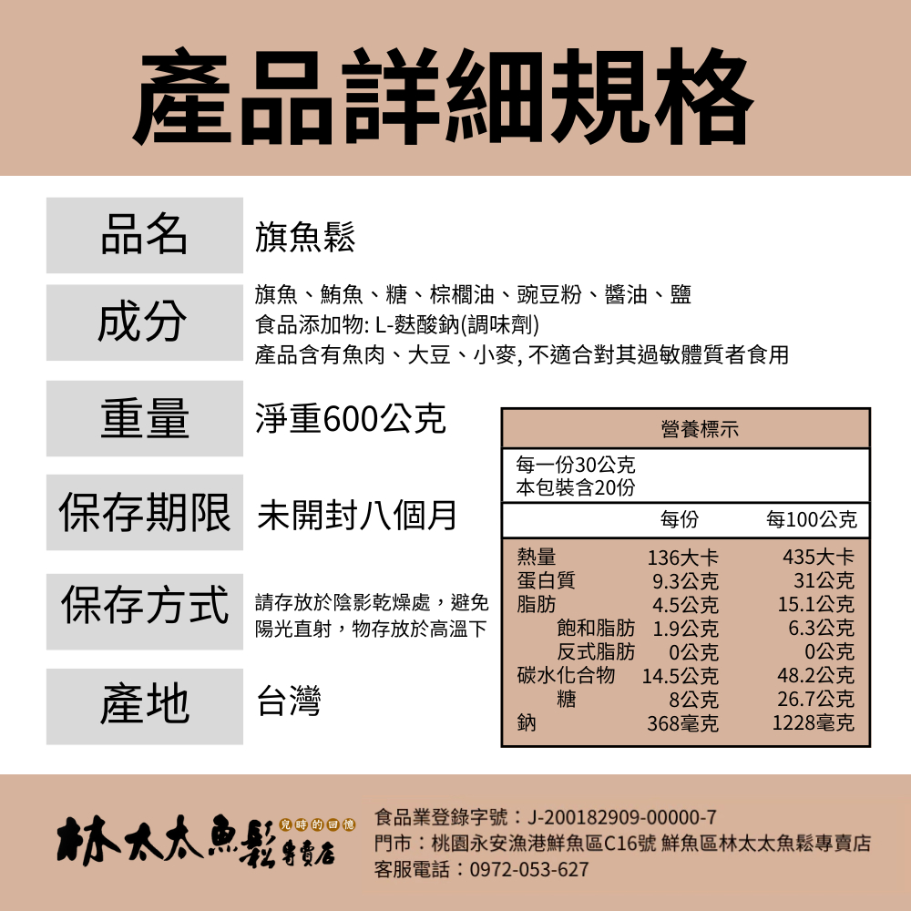 【林太太魚鬆專賣店】 旗魚鬆600g
