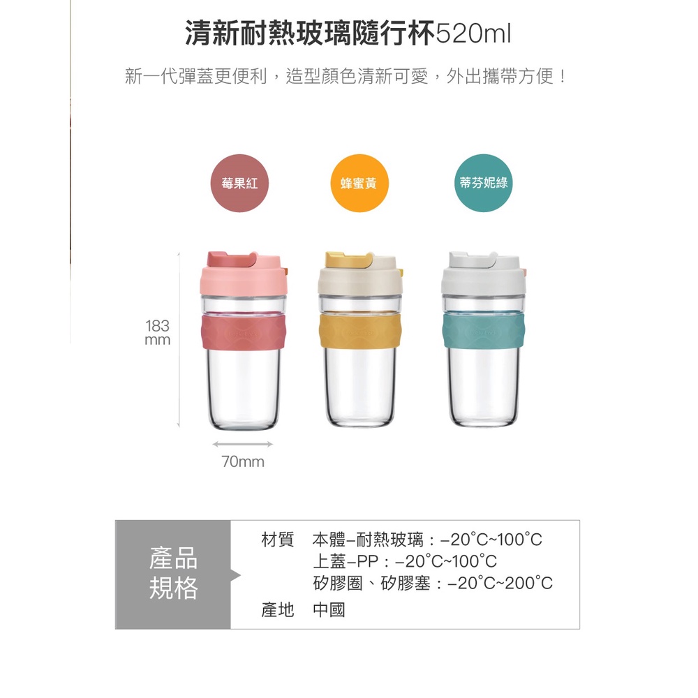 【樂扣樂扣】北歐風二代彈蓋耐熱玻璃隨行杯520ml (三色任選)