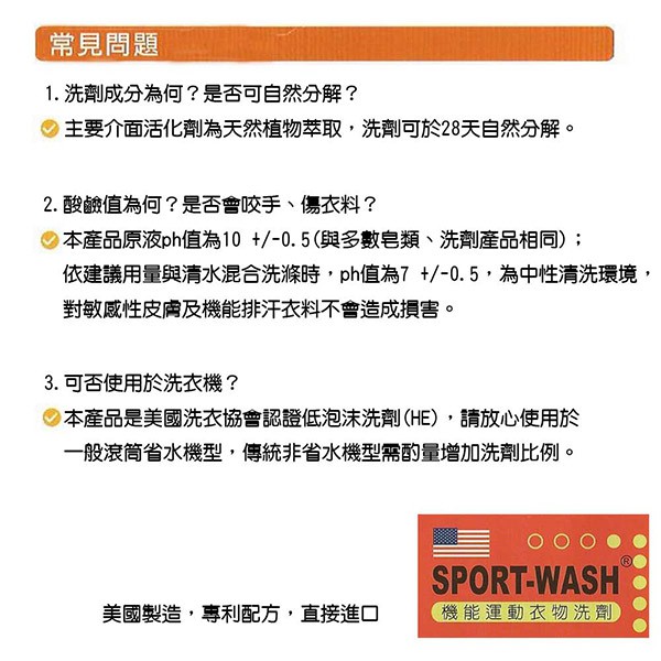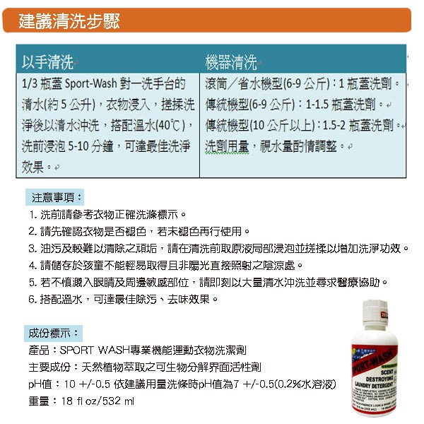 【樂活式單車館】Sportwash 運動排汗衣專用洗衣劑 大/中/小 Sport wash
