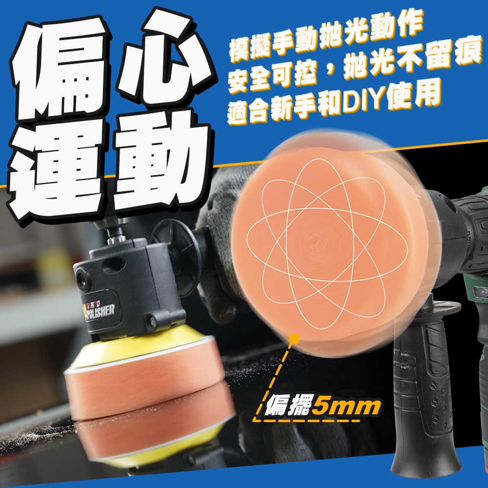 【機械堂】打蠟機 偏心拋光機轉接套組 DA機 電鑽變偏心打蠟機 送專家袋+7片棉 輕易去太陽紋 大燈霧黃 還你新車感動!