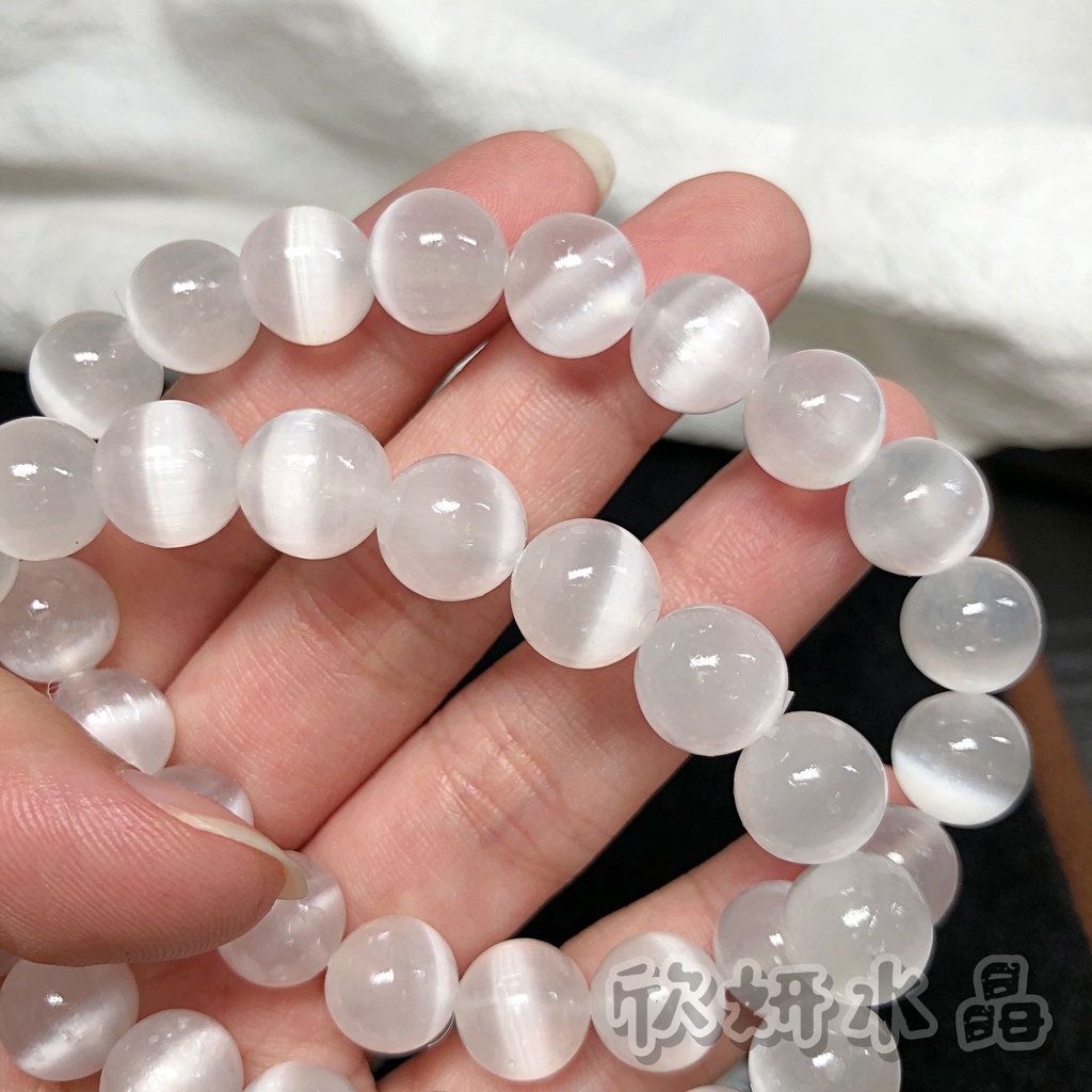 【欣小妞】石膏石 透石膏 貓眼摩洛哥石膏石 超強貓眼 能量淨化石 天然水晶 串珠手鍊 手珠 手串 水晶珠串 水晶