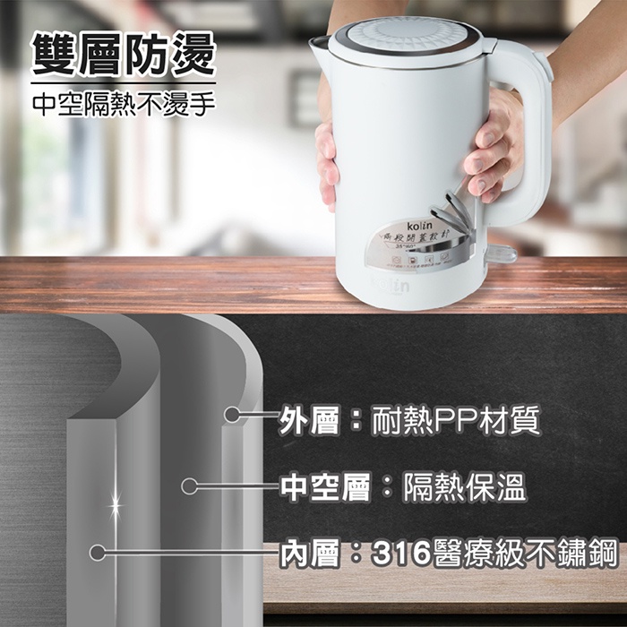 【Kolin 歌林】316不鏽鋼雙層防燙快煮壺 電茶壺 KPK-LN207 免運費