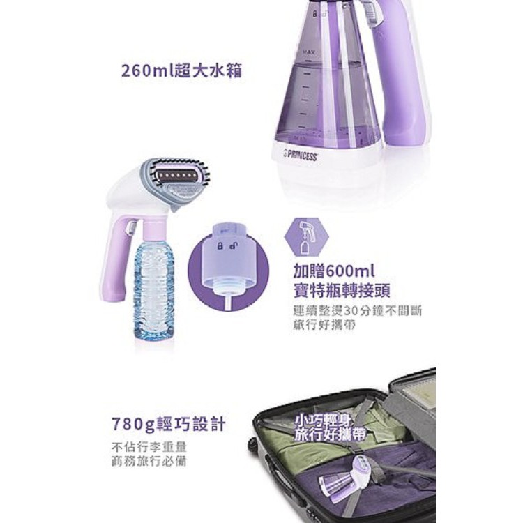 【歐風家電館】附發票-PRINCESS 荷蘭公主 手持式 蒸氣掛燙機 332846V 薰衣紫 (送防燙手套)