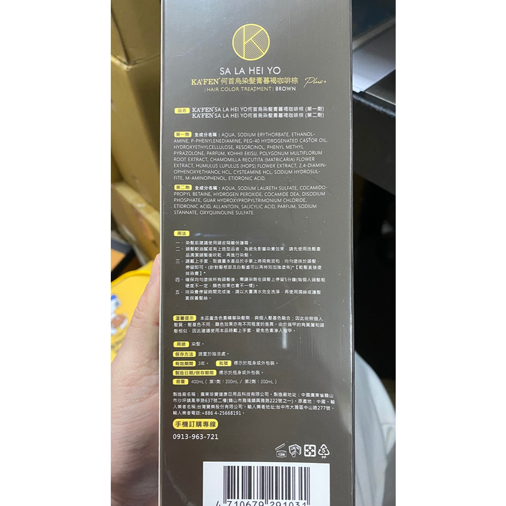 【正貨+發票】KA'FEN 卡氛 何首烏染髮膏400ml PLUS+ 咖啡棕/純粹黑/可可棕 400ml