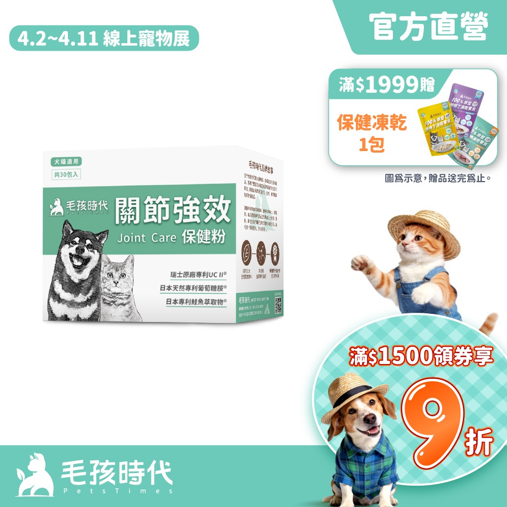 【毛孩時代】犬貓適用-寵物關節保健食品<30包/盒>幫助犬貓關節活動力-專利UC II+天然葡萄糖胺-官方直營