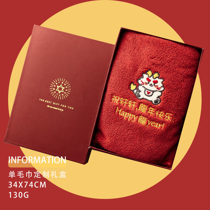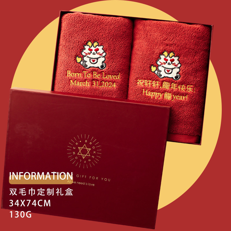 【毛巾】客製化龍年新年家居裝飾喜慶紅色毛巾結婚可定做繡字純棉吸水本命年禮盒