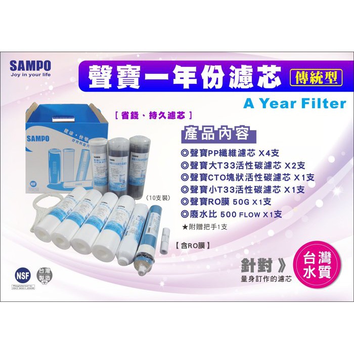 【水易購淨水網-苗栗店】RO一年份濾心+聲寶RO膜 50G10支裝