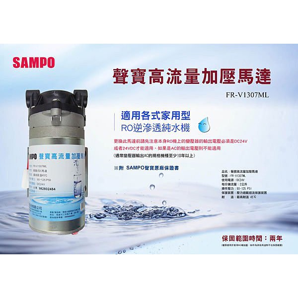 【水易購淨水-苗栗店 】聲寶《SAMPO》家用型高流量加壓馬達《FR-V1307ML》保固兩年