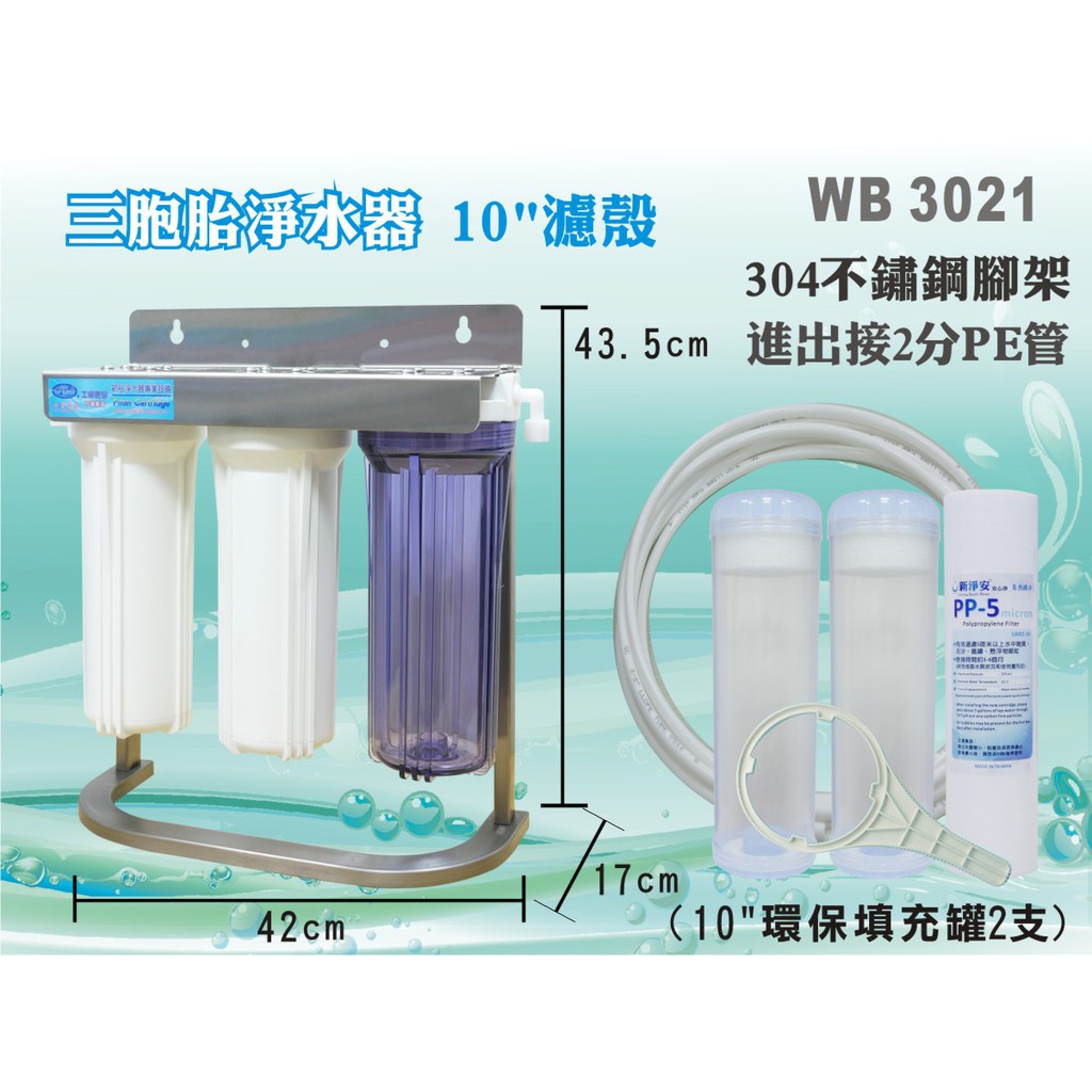 【水築館淨水】【不鏽鋼腳架型】304白鐵 10英吋三管淨水器 (填充空罐) 含水管板手優惠 過濾器(WB3021)