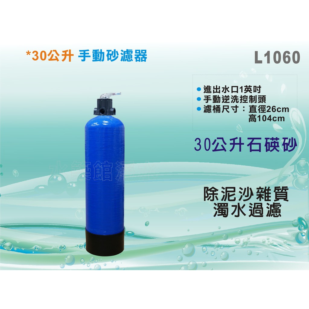 【水築館淨水】30公升石碤砂過濾器 手動沖洗控制- 全屋過濾 地下水/自來水除泥沙雜質 含30L石碤砂(L1060)