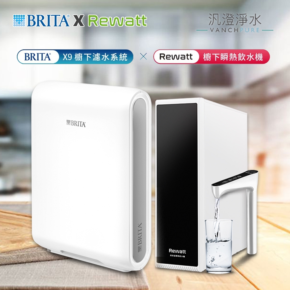 【汎澄淨水】BRITA x Rewatt 廚下濾水系統 X9 + 廚下瞬熱雙溫飲水機 YO-50公司貨【贈安裝、免運費】
