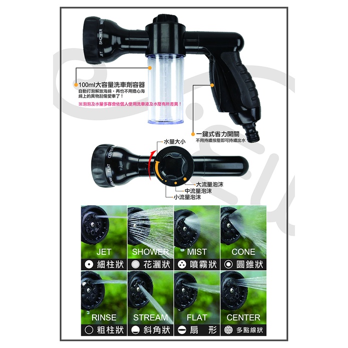 【沐象精品衛浴】Elephant Waters 沐象 洗車八段多功能水槍 戶外 園藝 澆花 洗車 自帶洗車劑容器