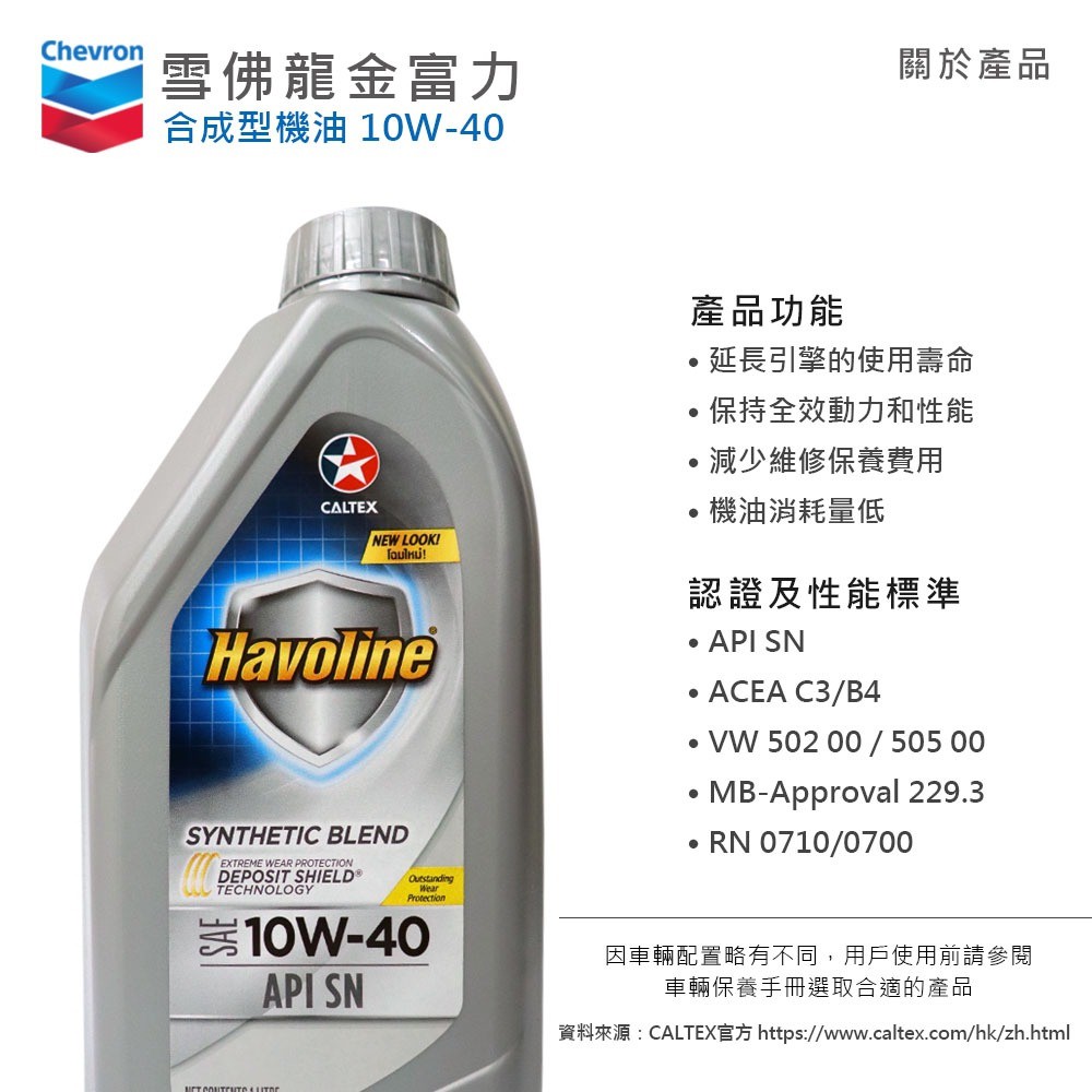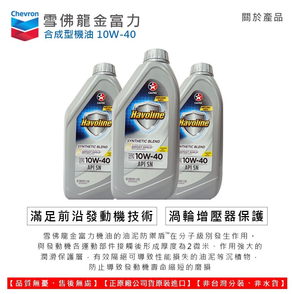 【油夠讚】雪佛龍 Chevron 加德士 CALTEX 10W40 合成機油 Havoline® 金富力