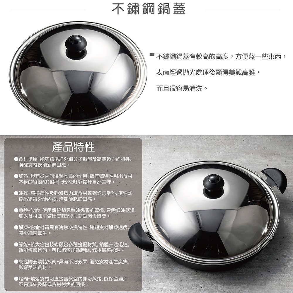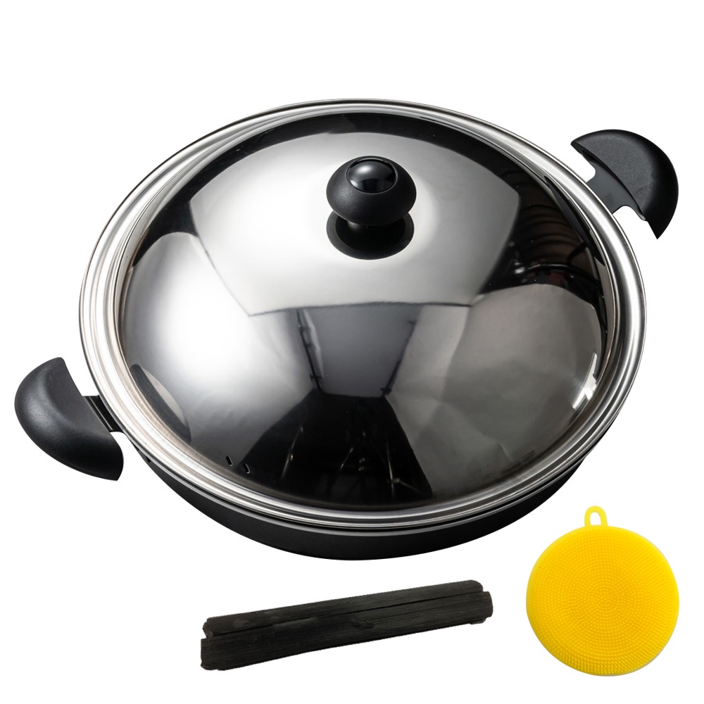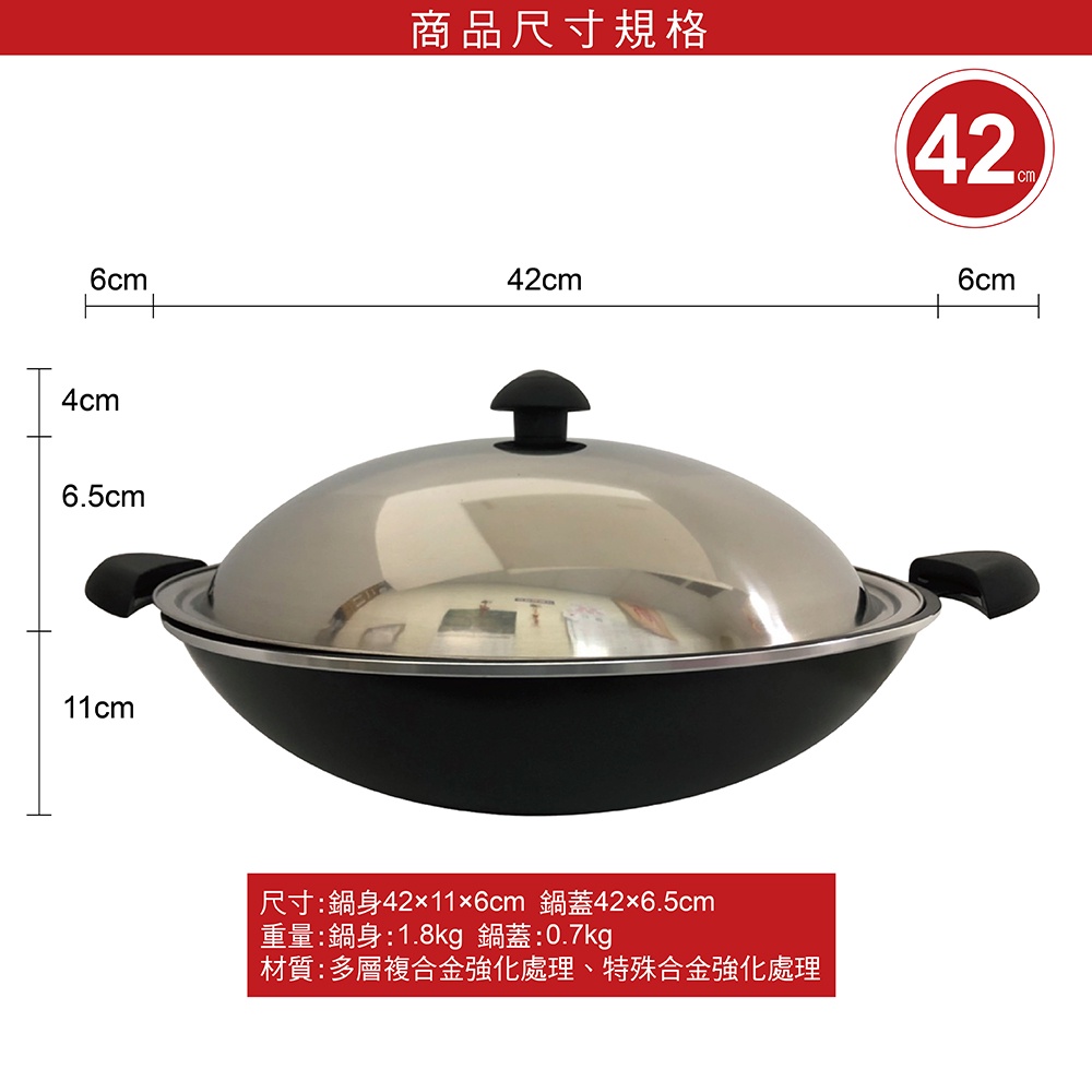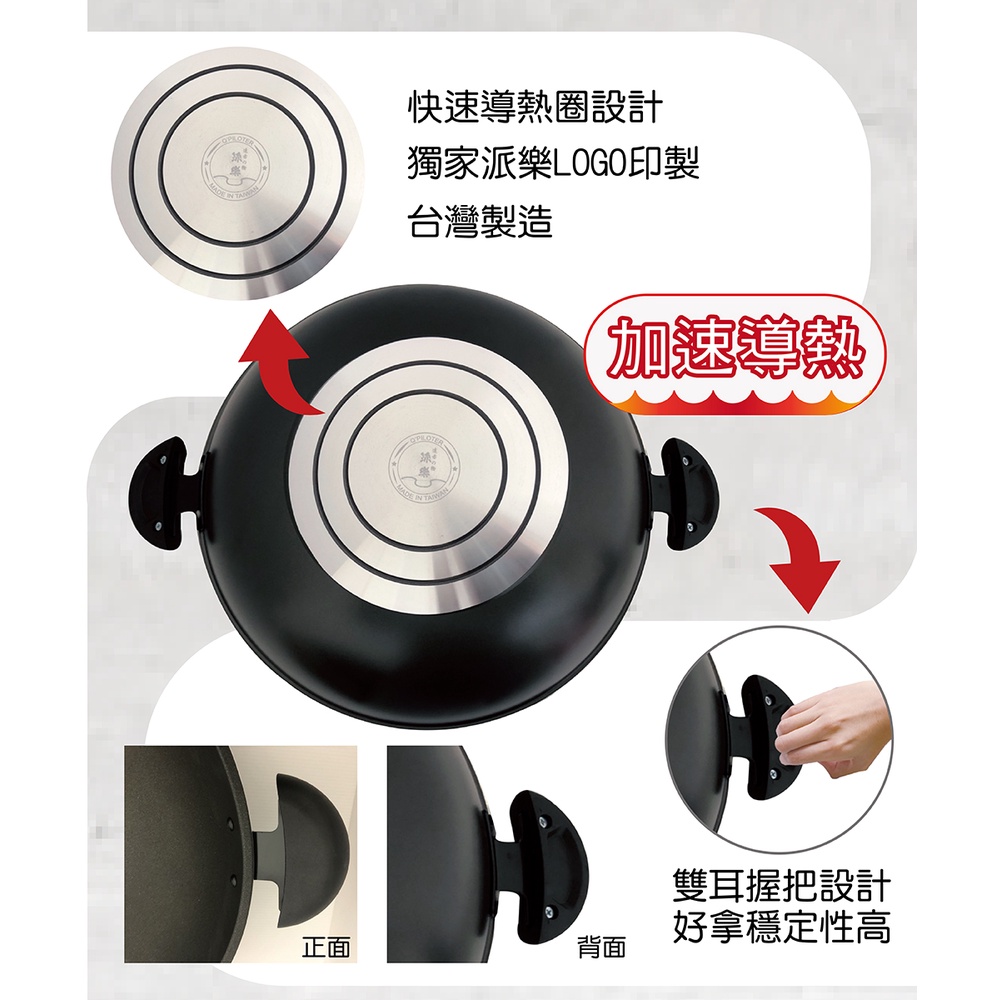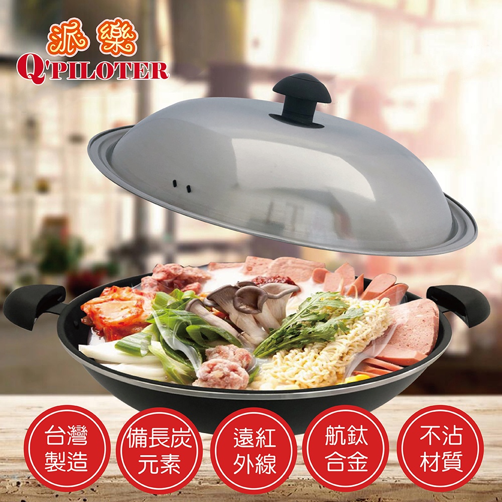 【派樂】大亨 遠紅外線備長炭 大富炒鍋 雙耳湯炒鍋42cm 附不鏽鋼鍋蓋 (贈備長炭+矽膠鍋刷)-航鈦合金不沾鍋