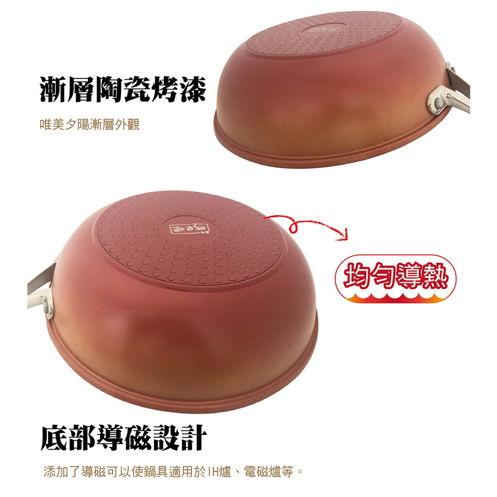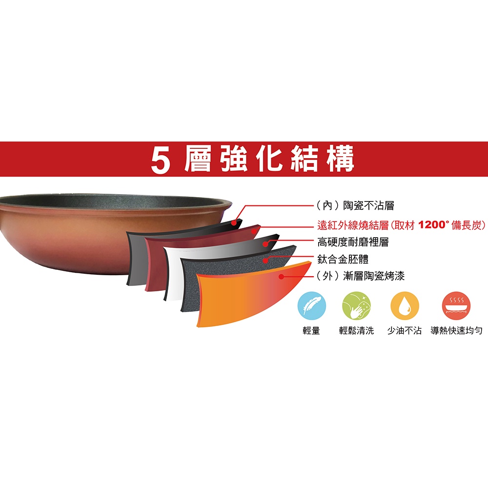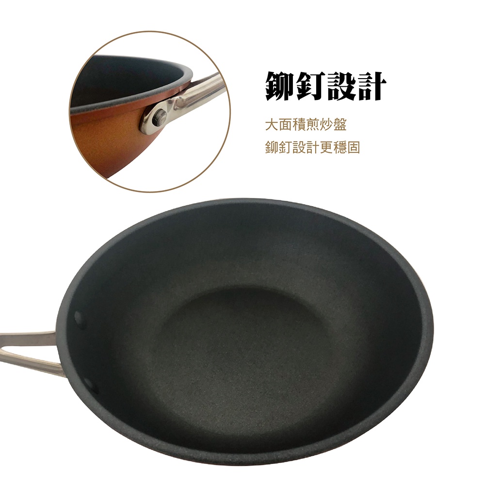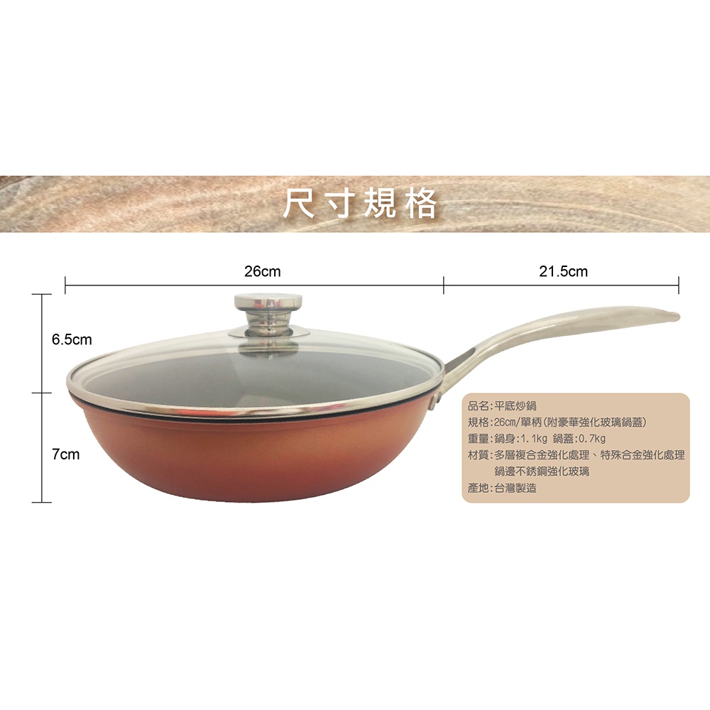 【派樂】炭之鼎 遠紅外線備長炭彩金中華炒鍋26cm含玻璃鍋蓋(贈樟木墊) -台灣製造 平底炒菜鍋 不挑爐適導磁IH電磁爐