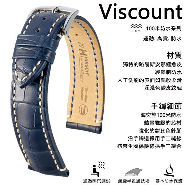 【海奕施 HIRSCH】10270779 百米防水 鱷魚皮錶帶 Viscount L 亞光棕色 附工具 台南時代