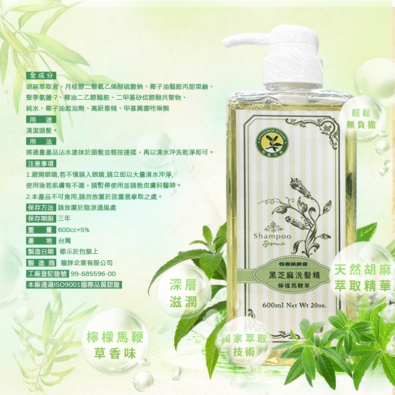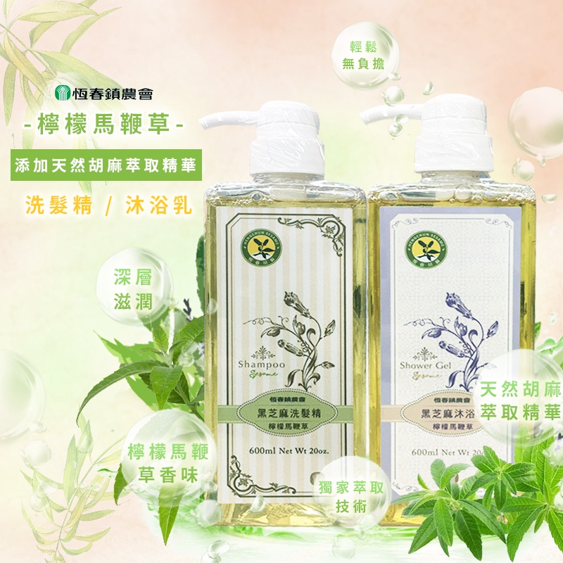 【滋養肌膚】恆春鎮農會 黑芝麻洗髮精 黑芝麻沐浴乳600ml 清潔用品 送禮 伴手禮 檸檬馬鞭草香味 居家必備 農漁特產