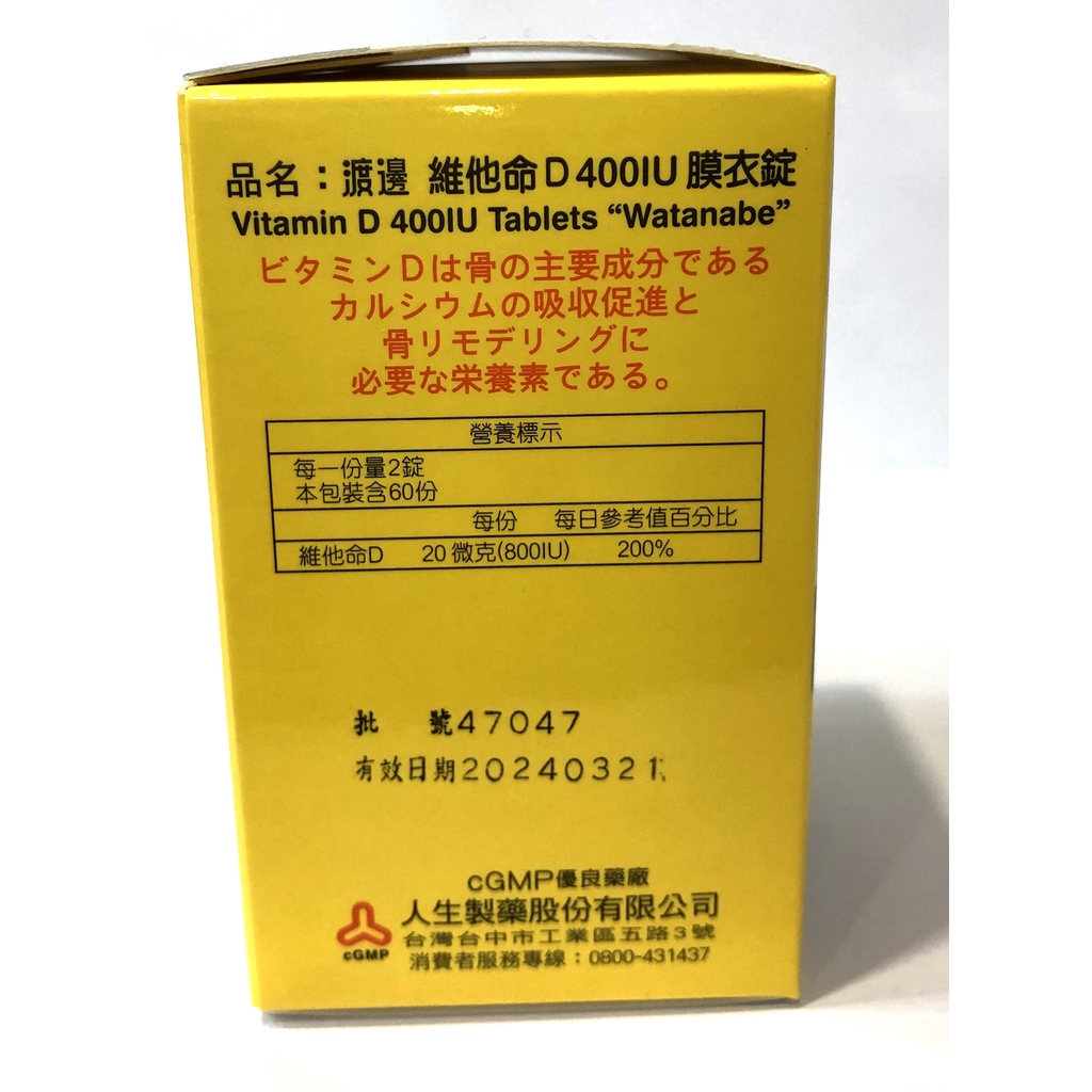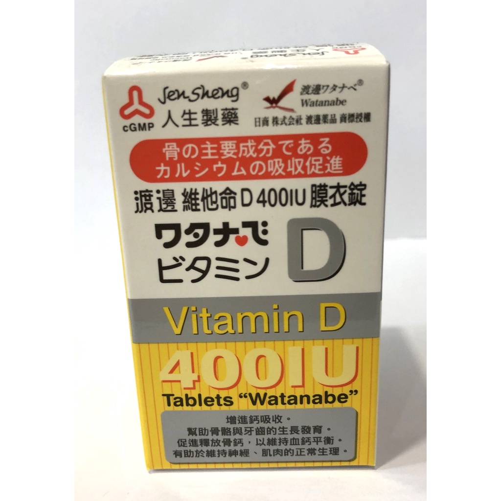 【滿千免運】人生製藥 渡邊 維他命D 400IU 膜衣錠 120錠 維生素D【新宜安中西藥局】