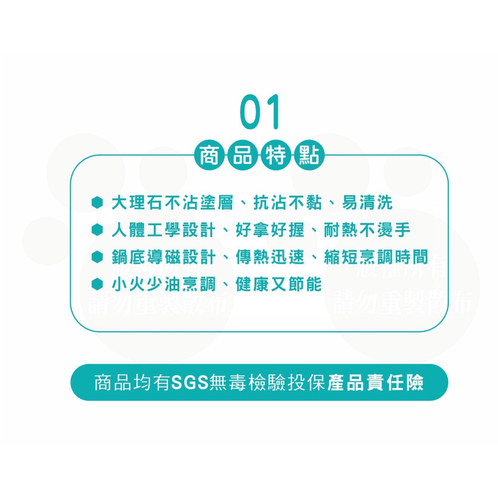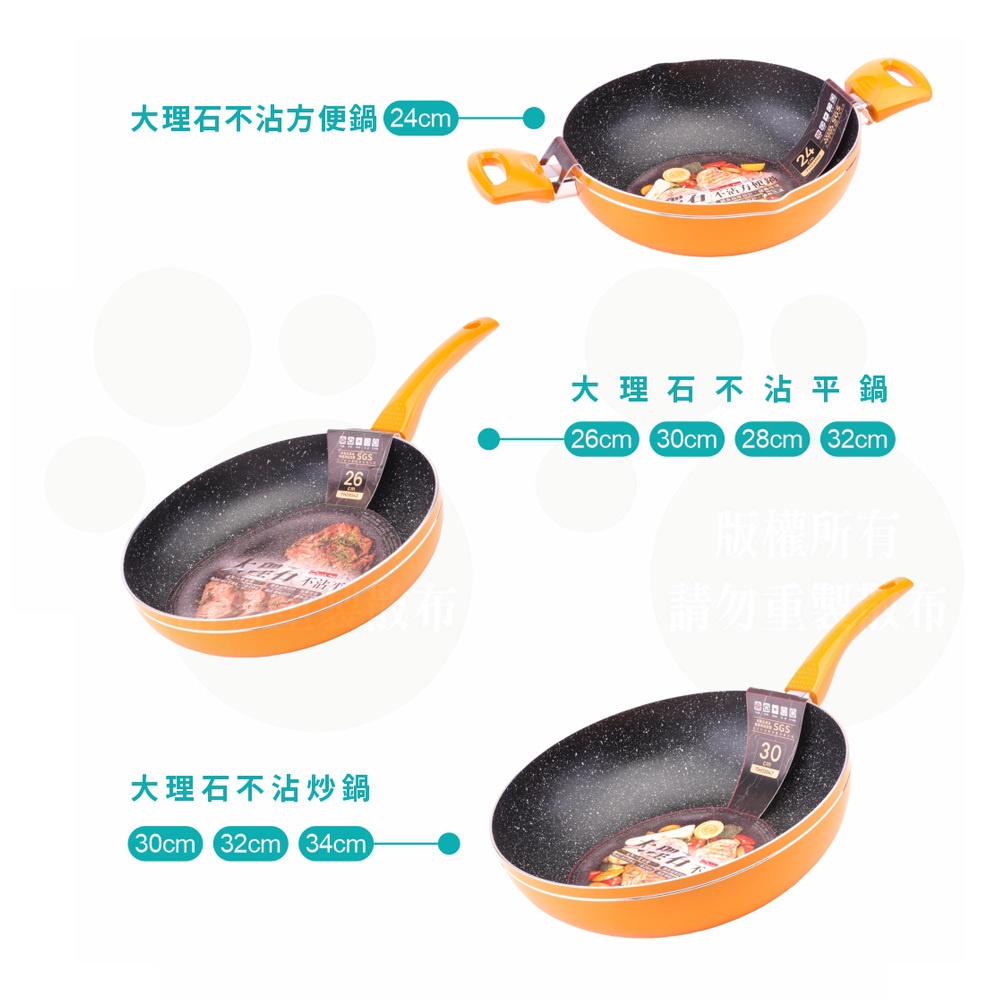 【潔豹】大理石不沾平底鍋 26CM (導磁不銹鋼加底 IH電磁爐可用、平煎鍋、不沾鍋、單柄鍋)