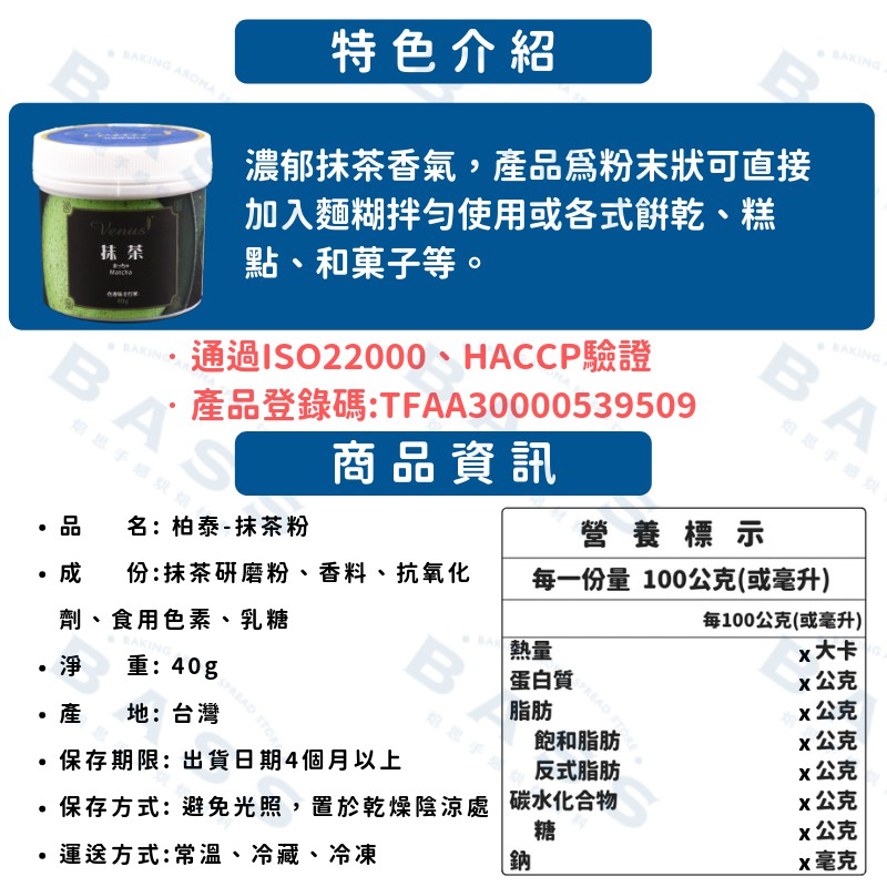 【焙思烘焙材料】 柏泰 抹茶粉 40g原裝 抹茶風味 抹茶香料 濃郁香氣