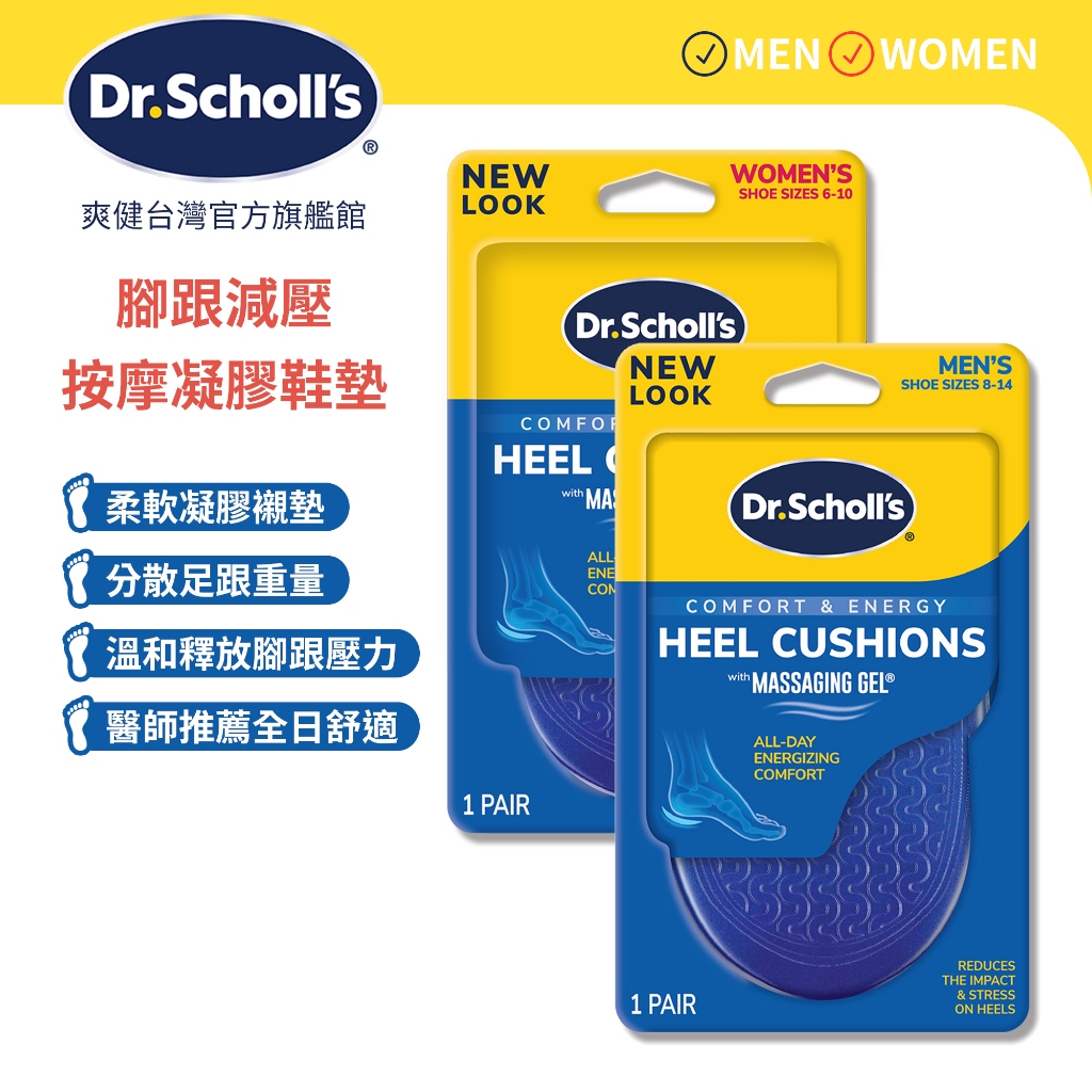 【爽健台灣】腳跟減壓按摩凝膠鞋墊 (男用/女用) 1雙入|Dr. Scholl's 台灣公司貨|
