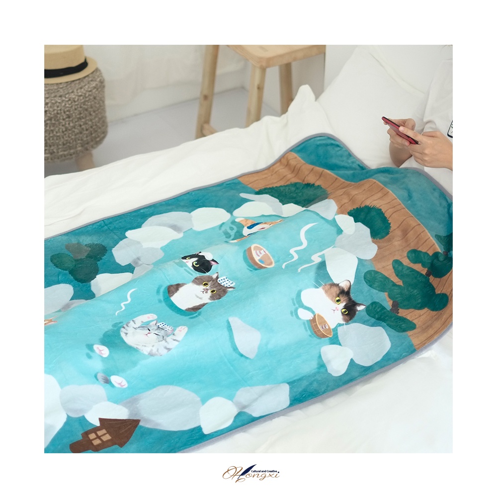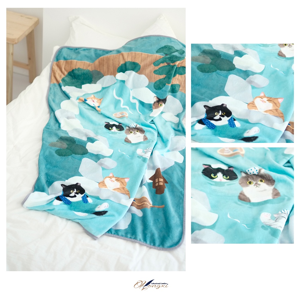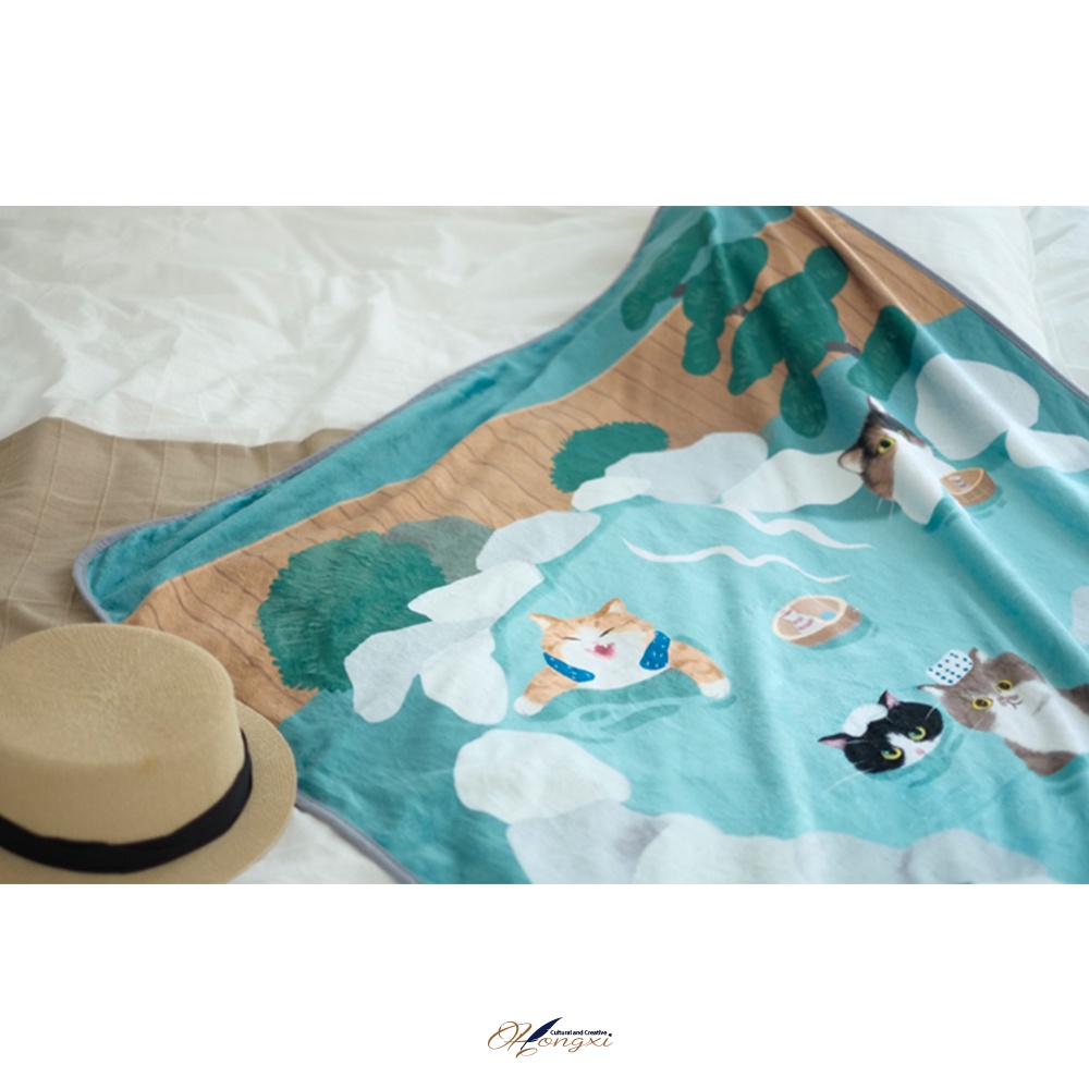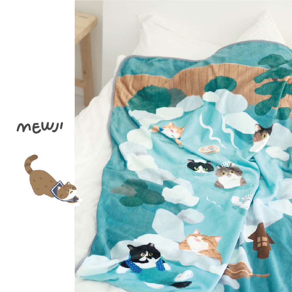 【現貨◊快速出貨】🎁弘曦文創X妙吉 😺🌺貓咪溫泉法蘭絨毯◊貓咪 可愛文創 禮物 保暖 寒流 小毯 小被