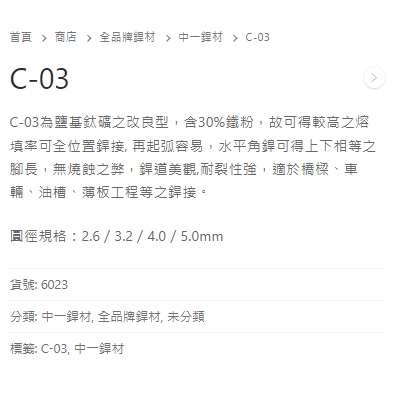 【含稅現貨】中一牌 C-03 軟鋼用電焊條 2.6-5.0 mm【單包裝5kg】 明昌龍焊材|五金