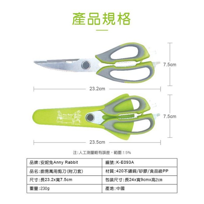 【現貨】廚房剪刀 食物剪 安妮兔廚房萬用剪刀 萬用剪刀 料理剪 廚房剪 剪刀 開瓶器 磁吸式 磁吸套 烤肉剪 雲蓁小屋